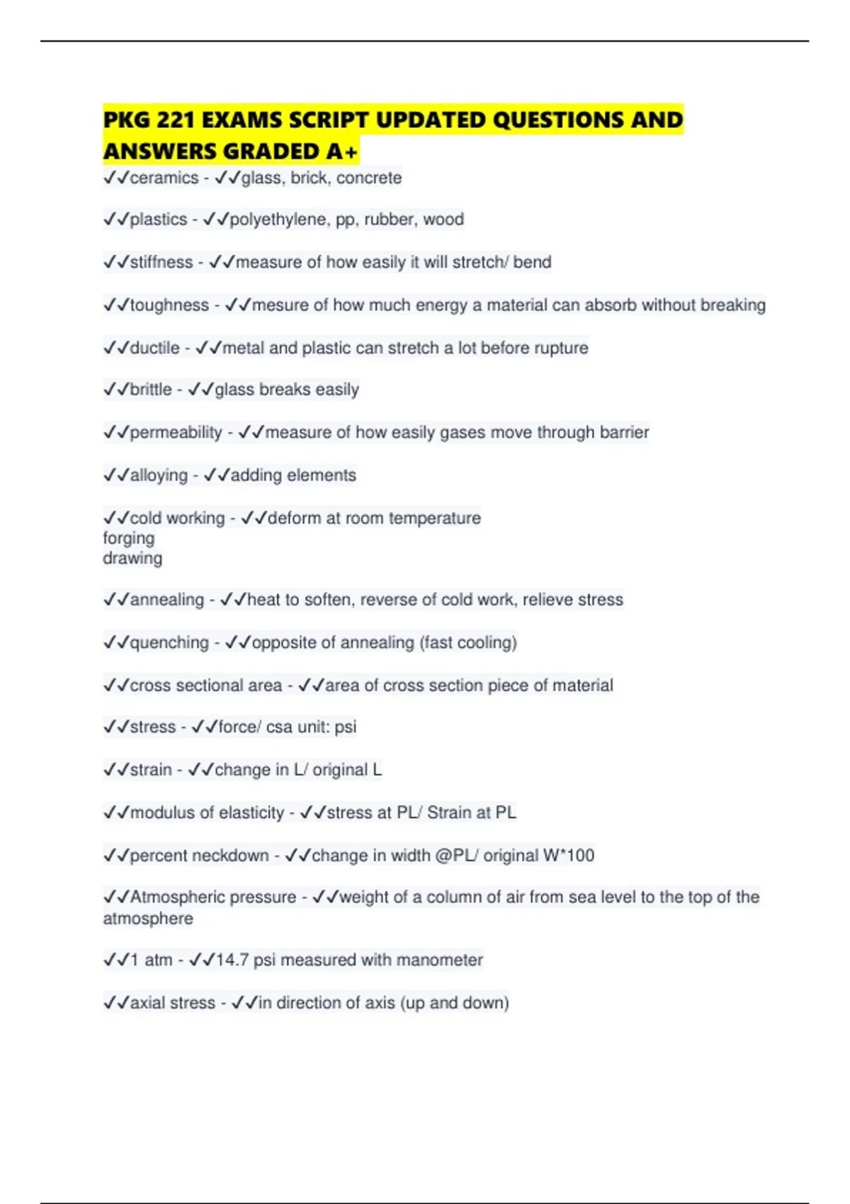 PKG 221 EXAMS SCRIPT UPDATED QUESTIONS AND ANSWERS GRADED A+