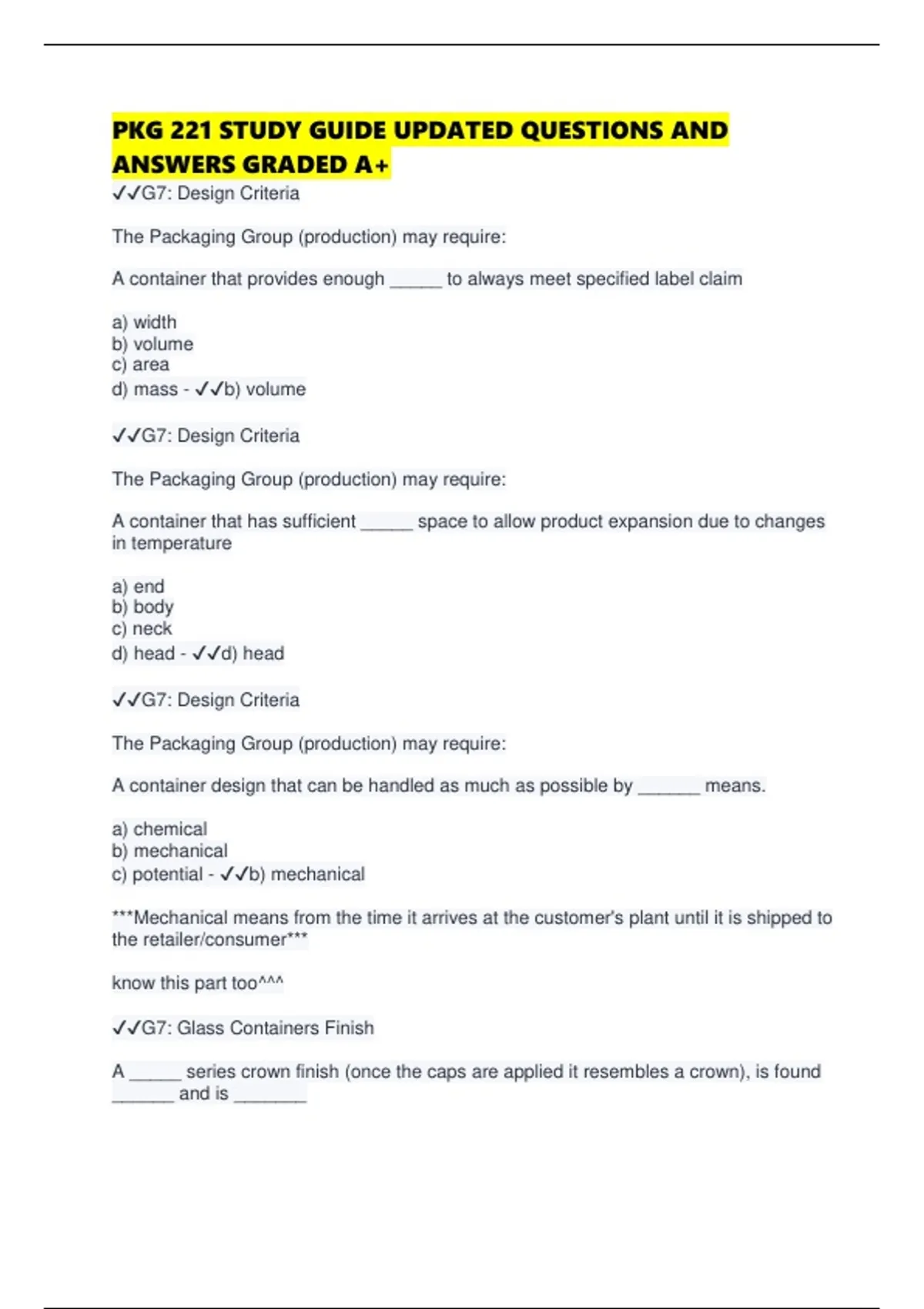 PKG 221 STUDY GUIDE UPDATED QUESTIONS AND
