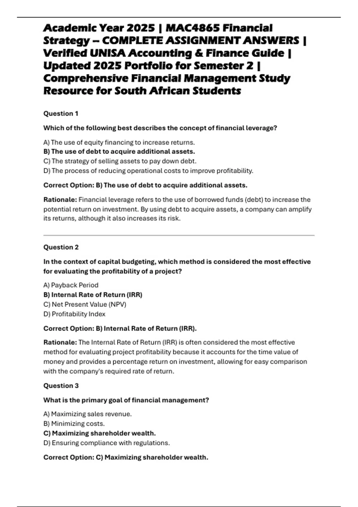 Strategy – COMPLETE ASSIGNMENT ANSWERS |