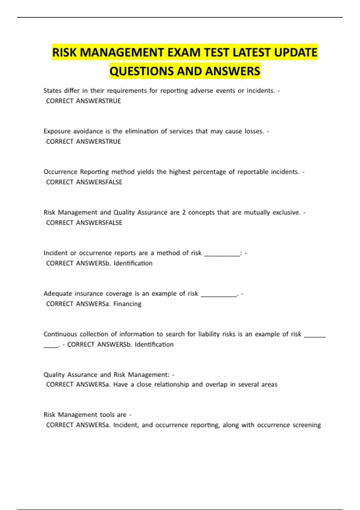 RISK MANAGEMENT EXAM TEST LATEST UPDATE