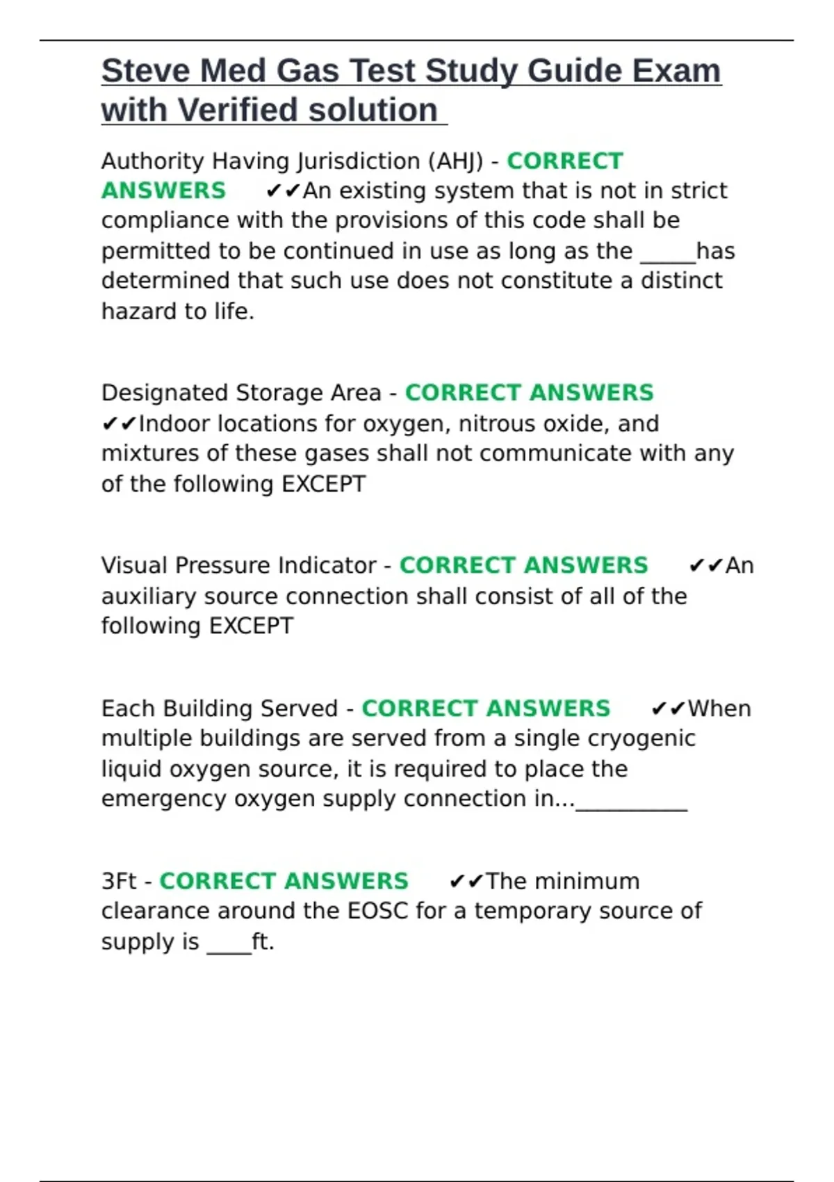 , Steve Med Gas Test Study Guide Exam