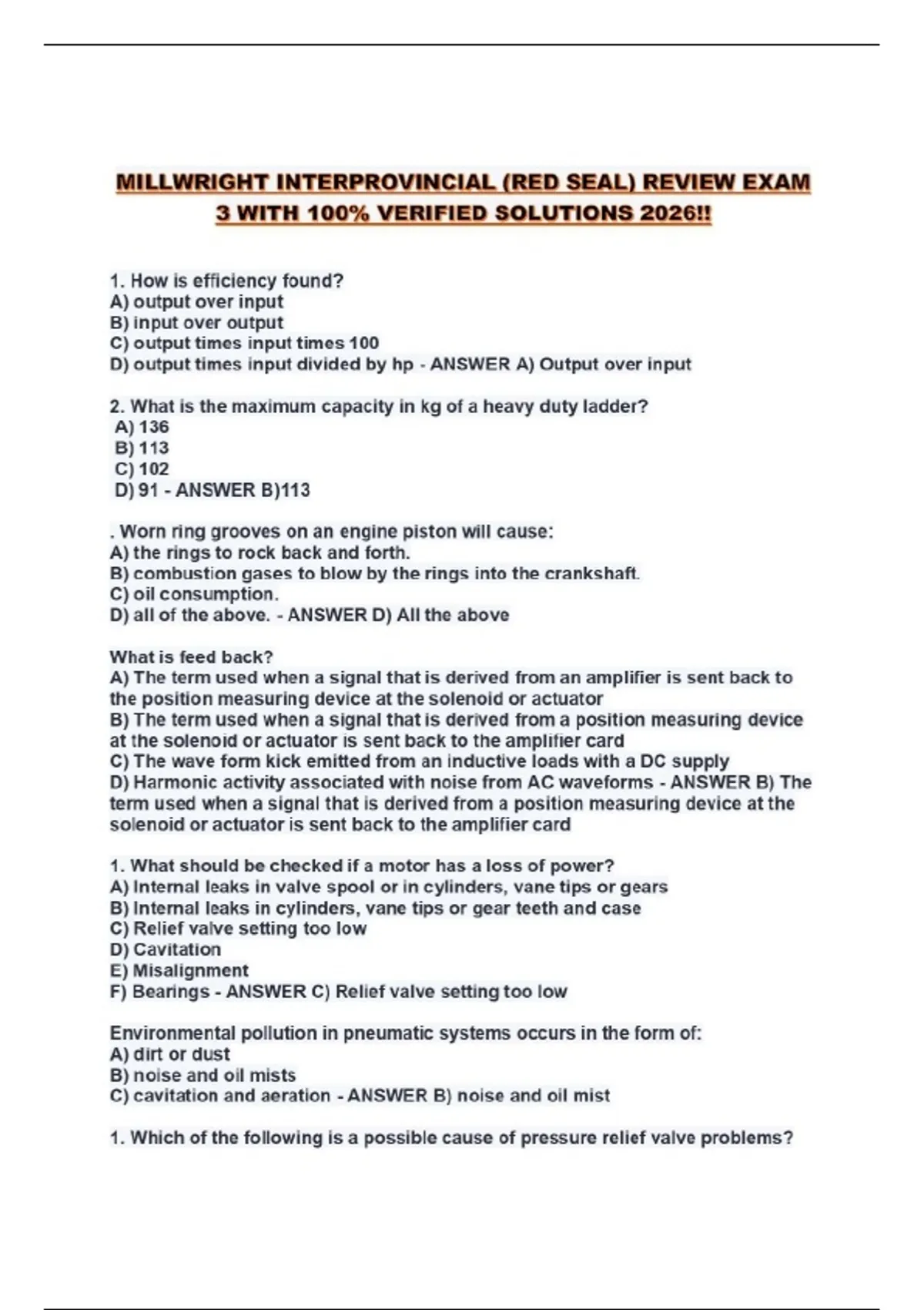 MILLWRIGHT INTERPROVINCIAL (RED SEAL) REVIEW EXAM 3 WITH 100% VERIFIED SOLUTIONS 2026!!...