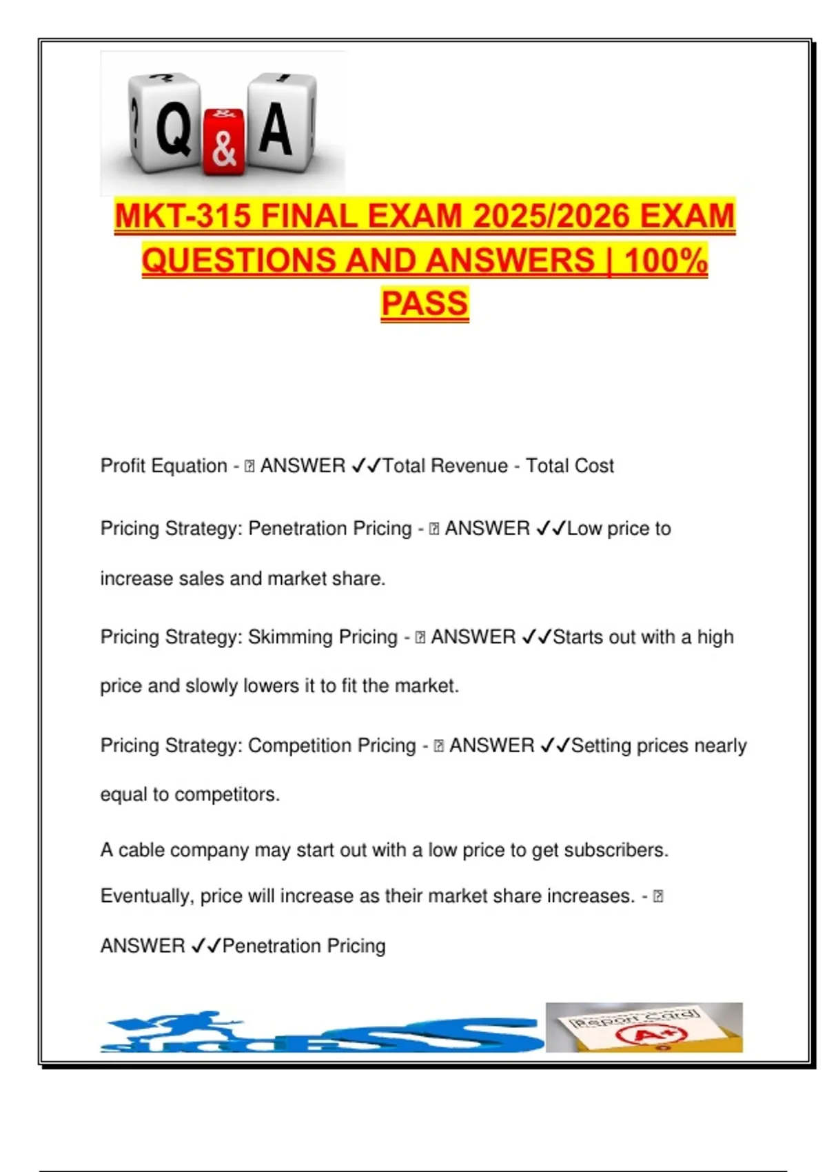 Pricing Strategy: Competition Pricing - 🧠 ANSWER ✔✔Setting prices nearly