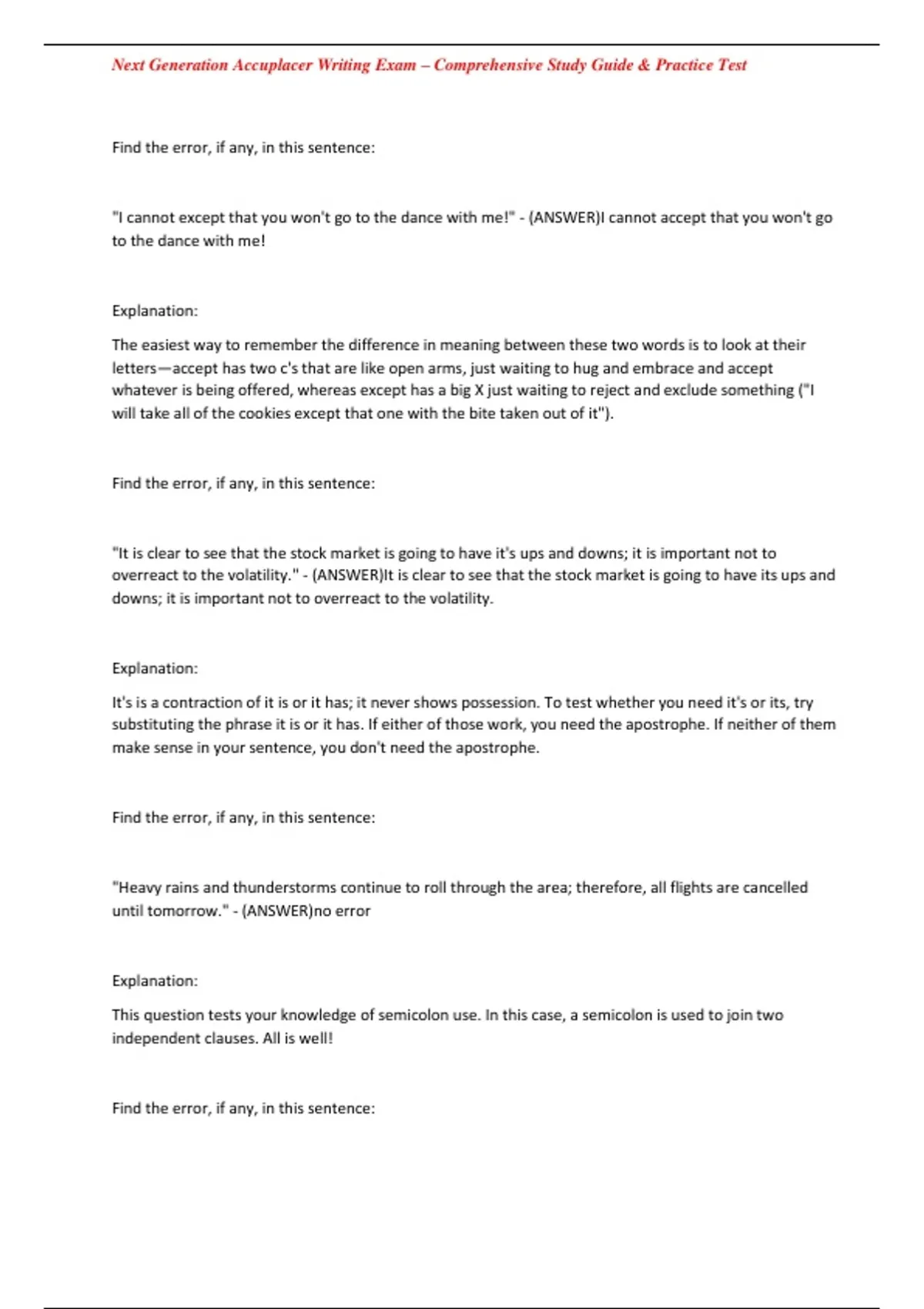 , Next Generation Accuplacer Writing Exam – Comprehensive Study Guide & Practice Test