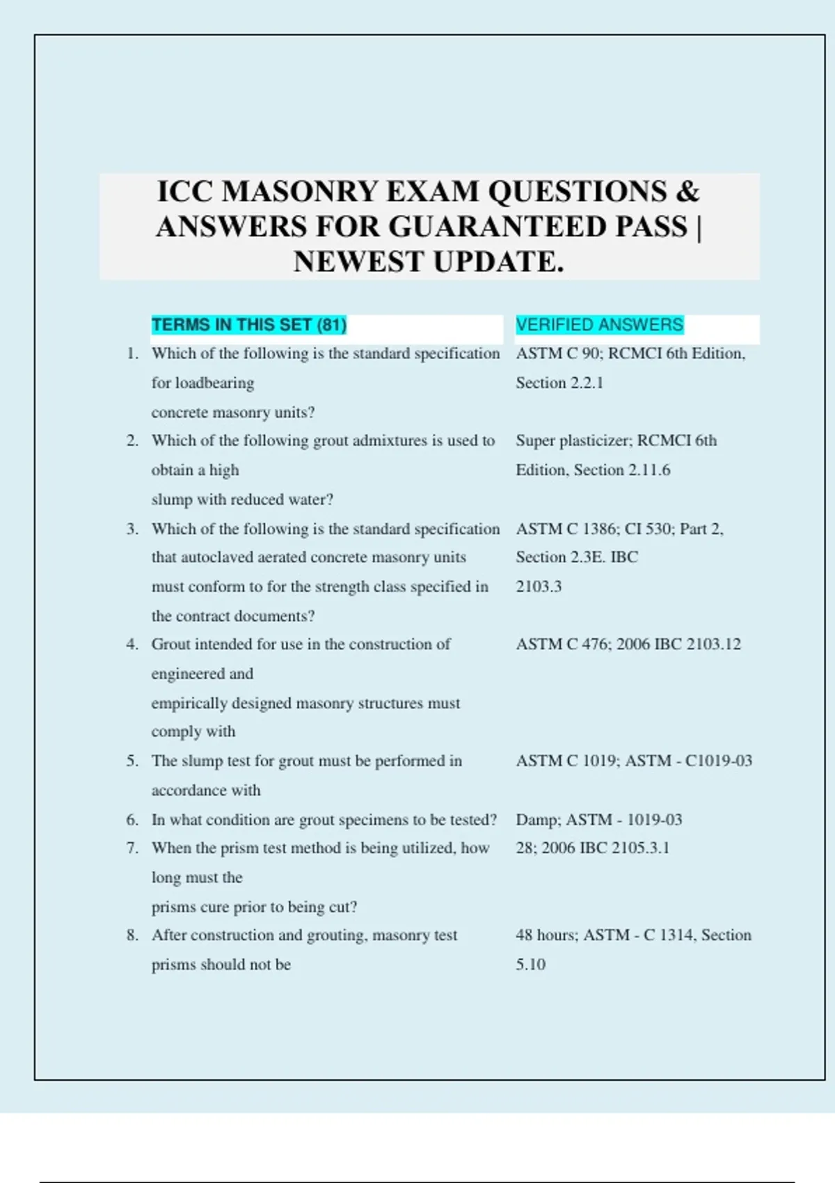ICC Masonry Exam Questions & Answers for Guaranteed Pass | Newest Update.