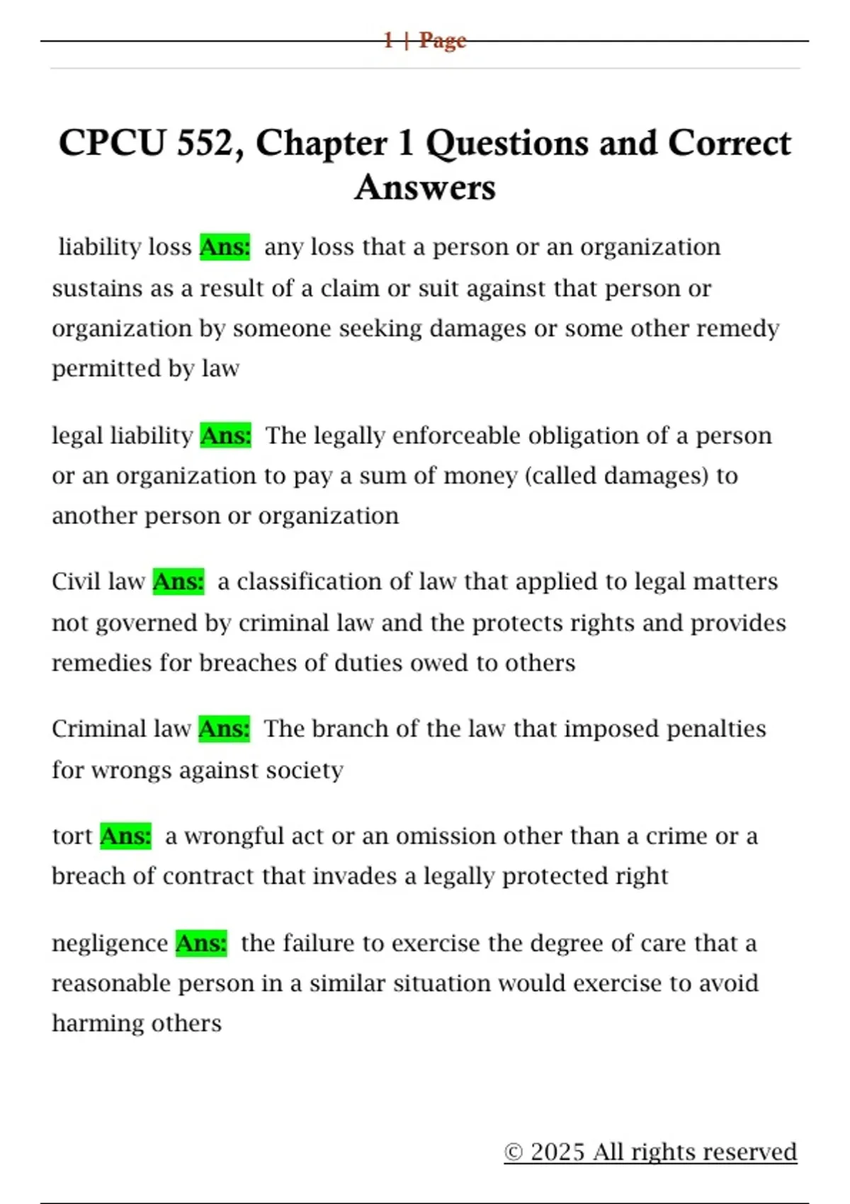 CPCU 552, Chapter 1 Questions and Correct Answers