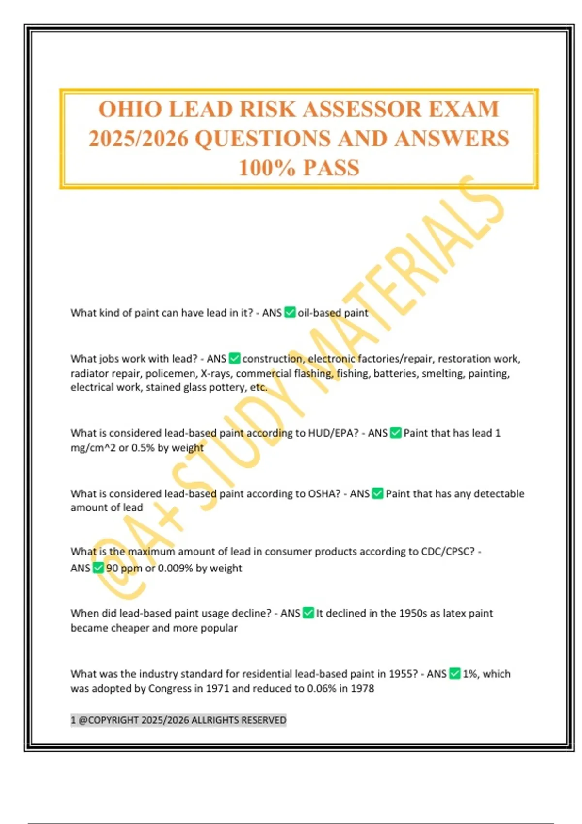 OHIO LEAD RISK ASSESSOR EXAM