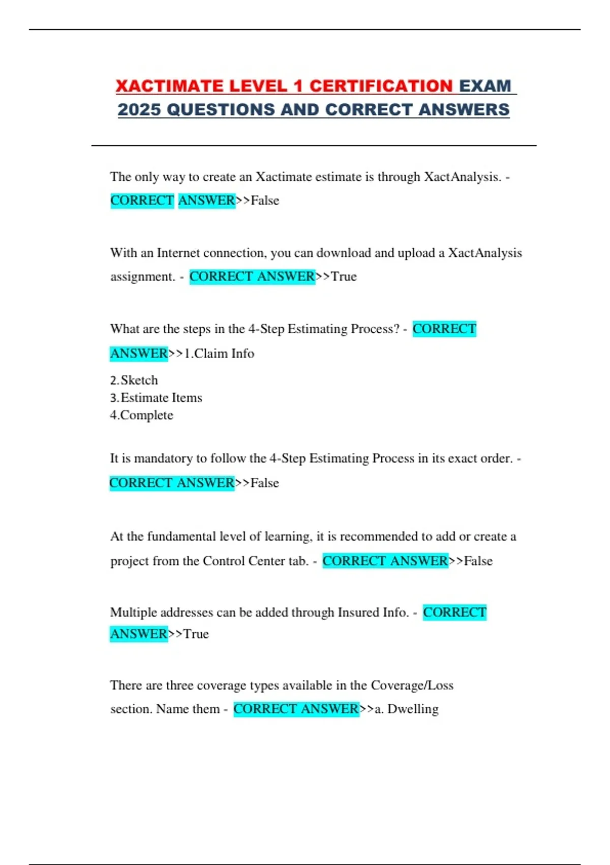 Xactimate Level 1 Certification Exam (2025) – Verified Questions and Correct Answers