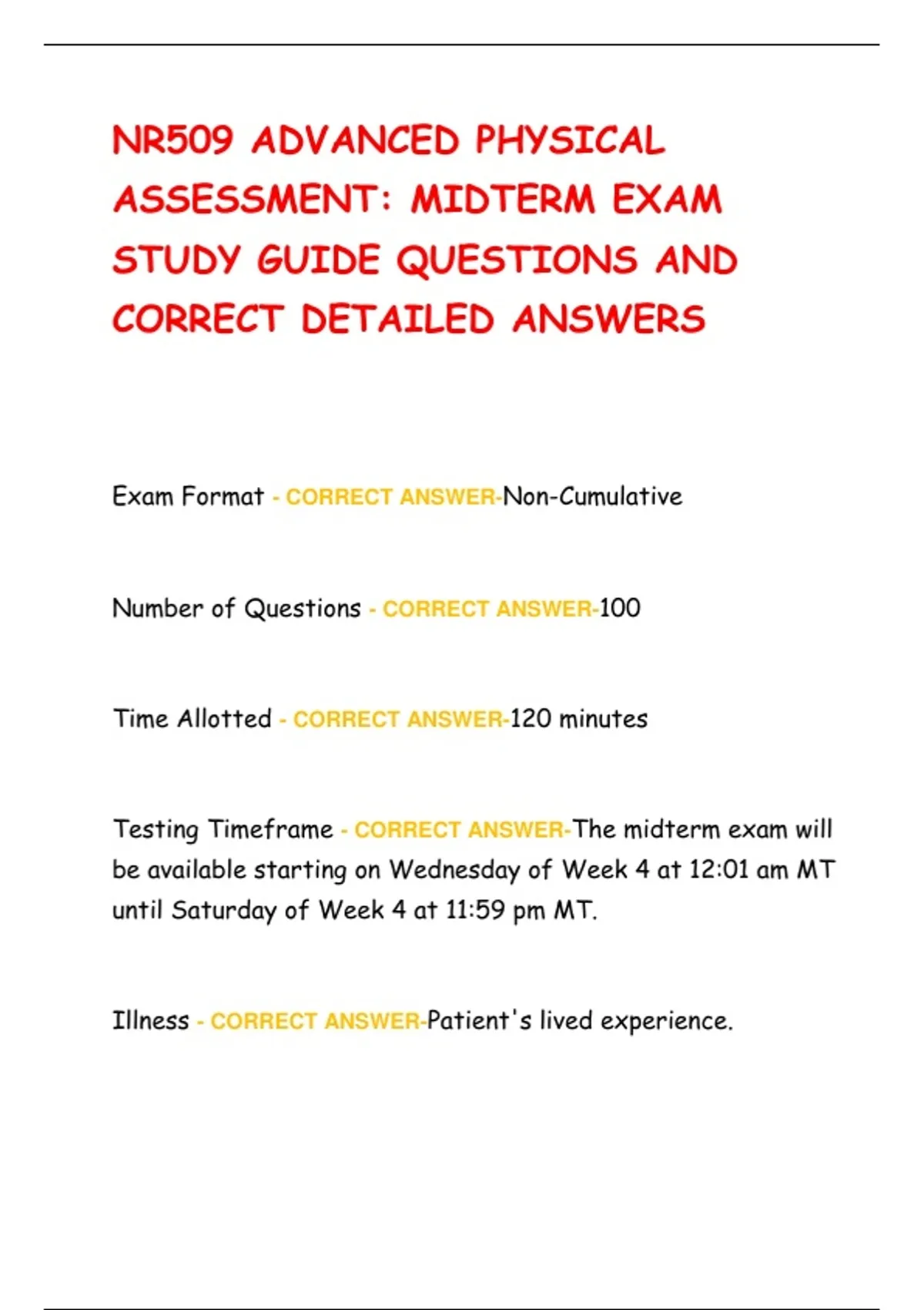 Testing Timeframe - CORRECT ANSWER-The midterm exam will