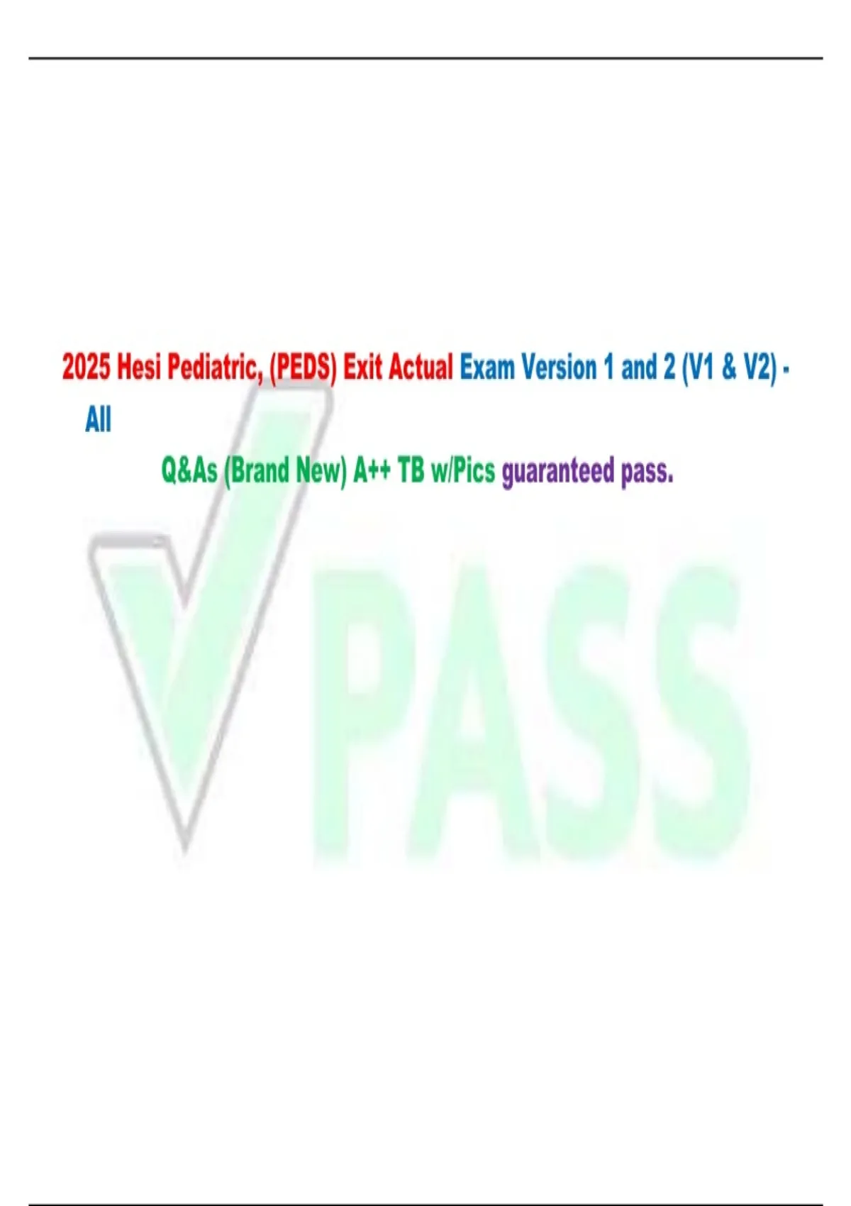 2025 Hesi Pediatric, (PEDS) Exit Actual Exam Version 1 and 2 (V1 & V2) - All Q&As (Brand New) A++ TB w/Pics guaranteed pass.