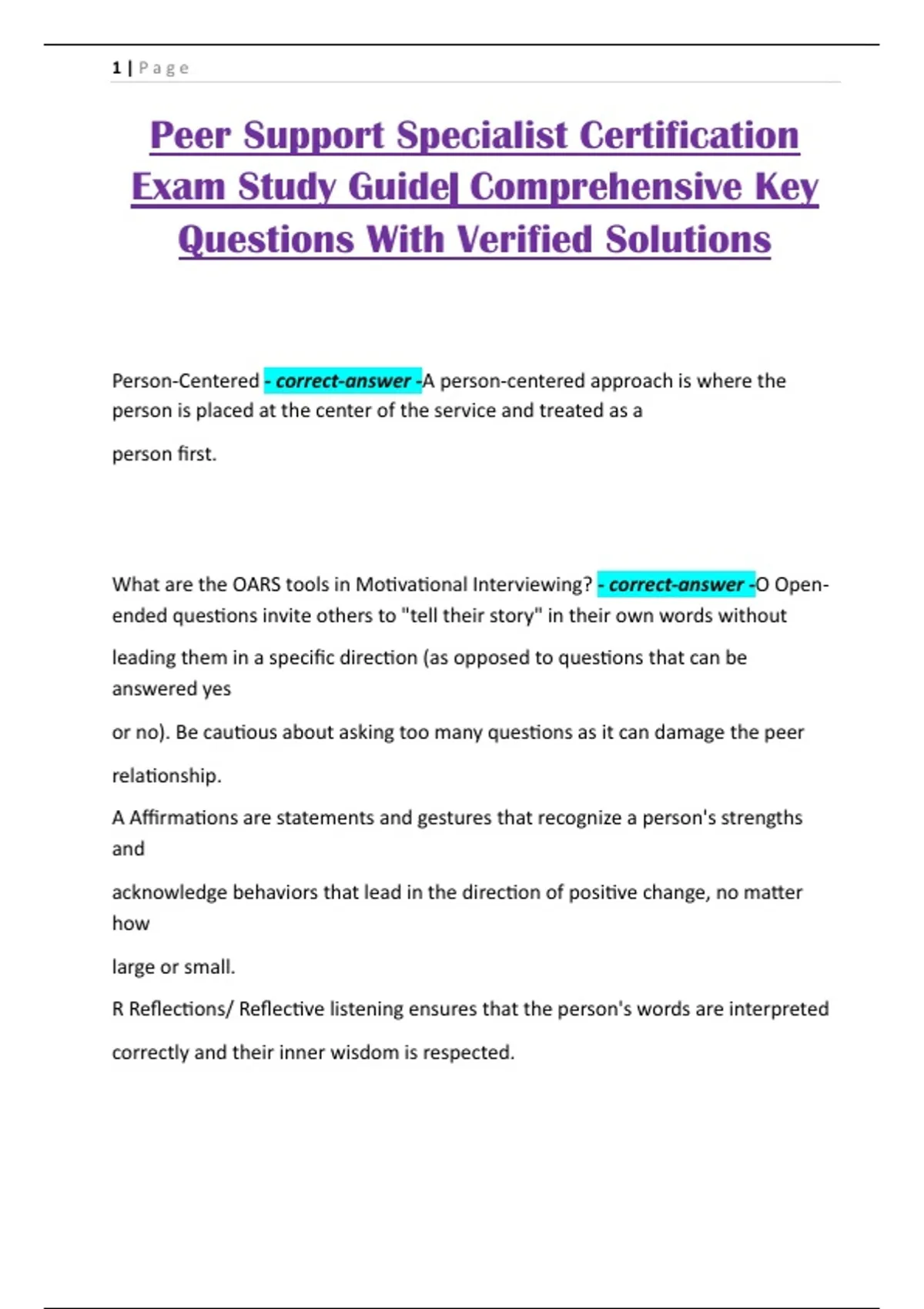 Person-Centered - correct-answer -A person-centered approach is where the