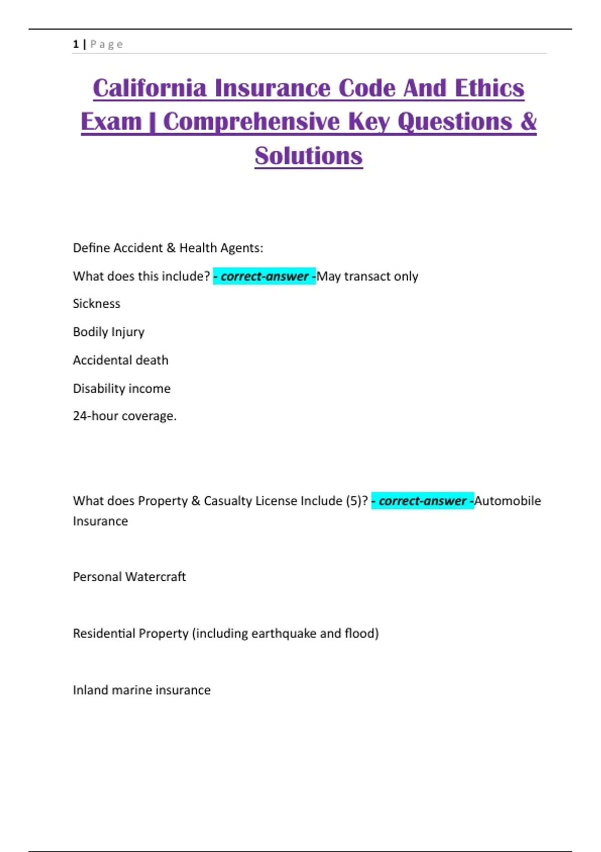 California Insurance Code And Ethics Exam | Comprehensive Key Questions & Solutions