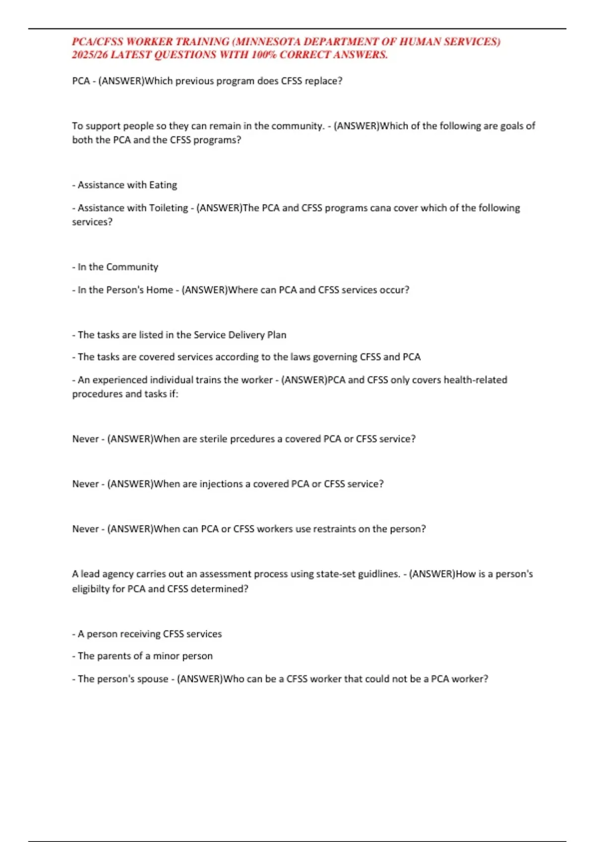 PCA/CFSS WORKER TRAINING (MINNESOTA DEPARTMENT OF HUMAN SERVICES)