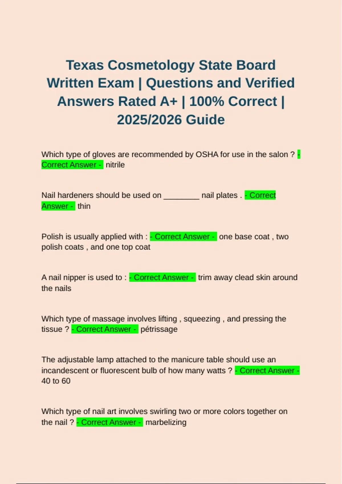 Texas Cosmetology State Board Written Exam TDLR | Questions and Verified Answers Rated A+ | Latest 2025/2026 Guide Texas Cosmetology State Board Written Exam TDLR | Questions and Verified Answers Rated A+ | Latest 2025/2026 Guide Texas Cosmetology State Board Written Exam TDLR | Questions and Verified Answers Rated A+ | Latest 2025/2026 Guide