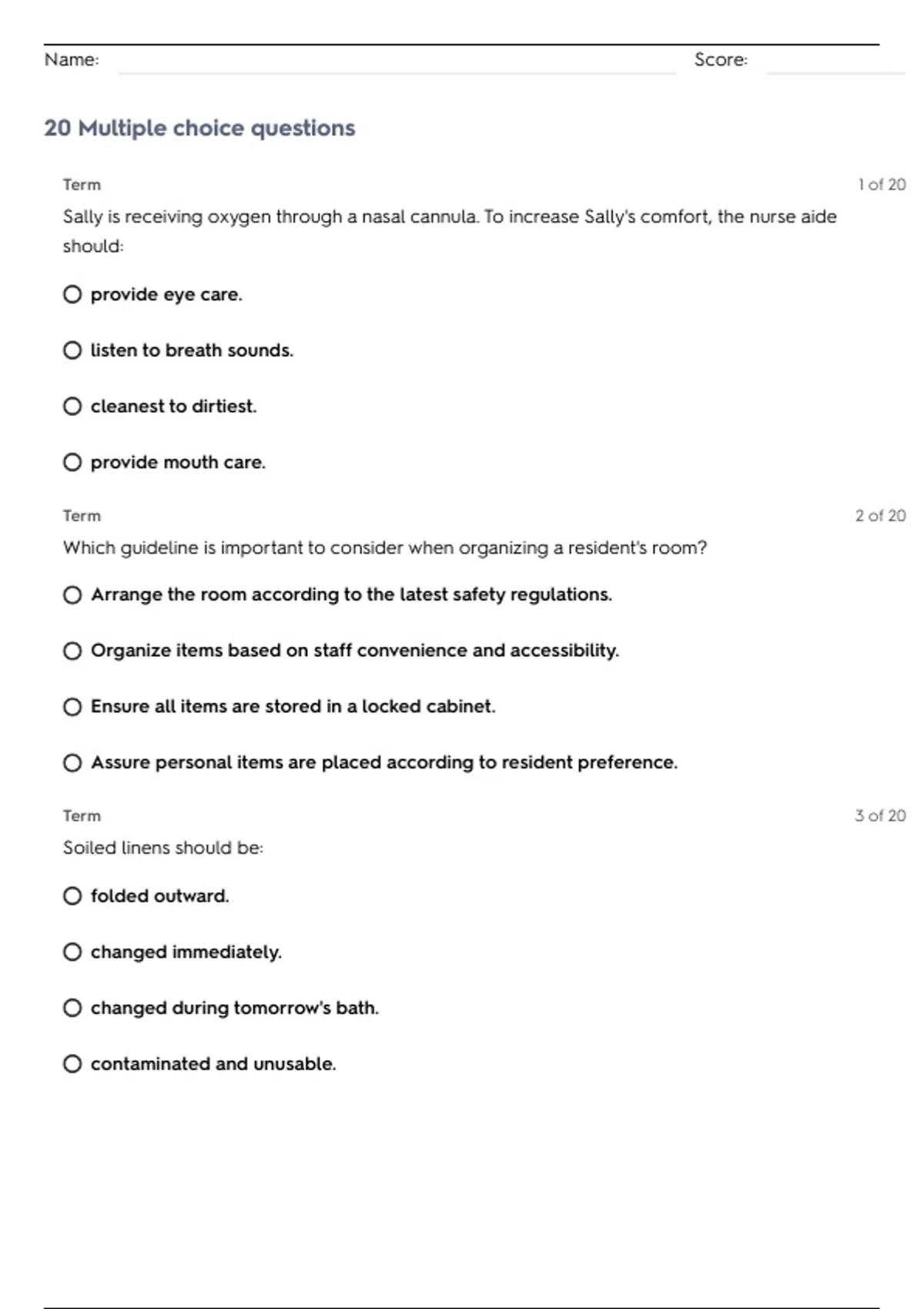 Name: Score: