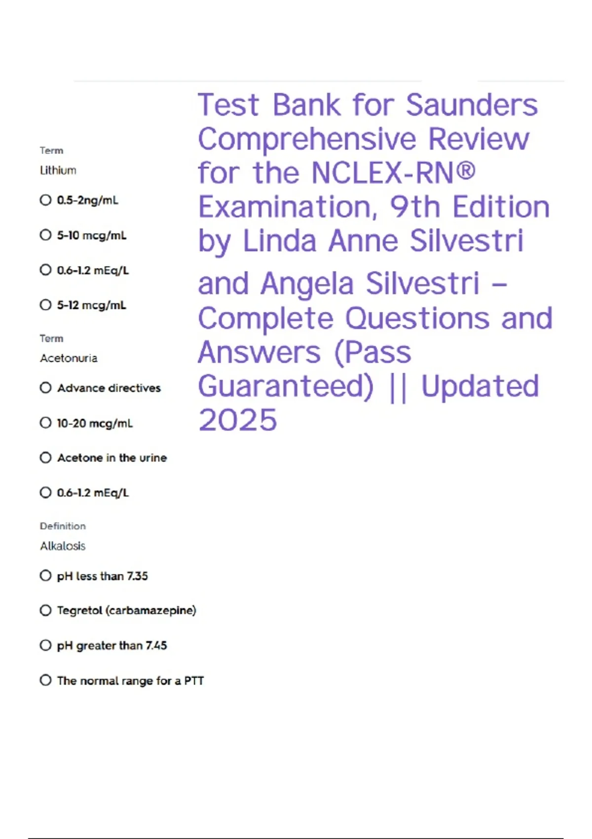 2025 UPDATED Test bank SAUNDERS COMPREHENSIVE REVIEW FOR THE NCLEX-PN® EXAMINATION, 8TH EDITION AUTHO