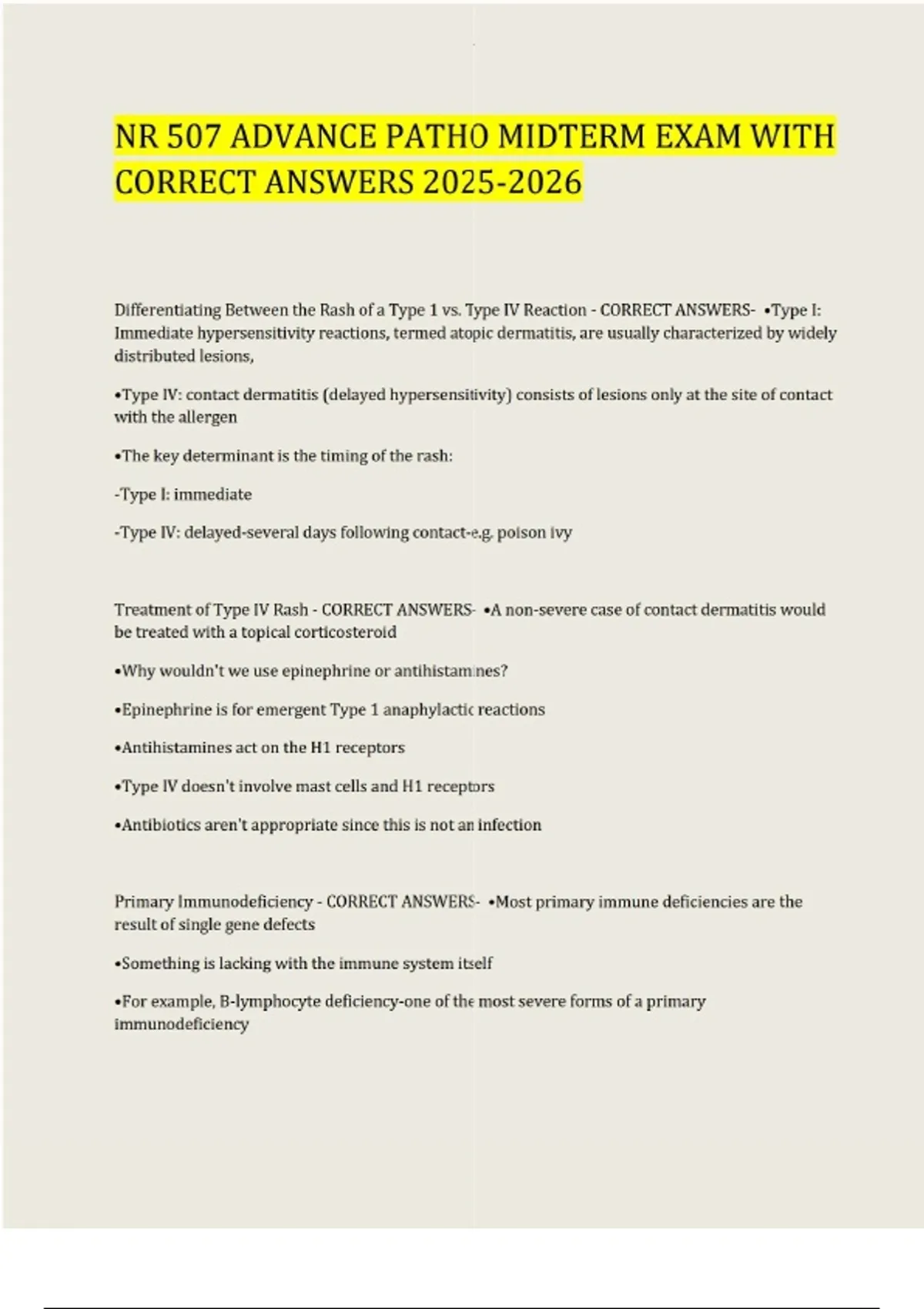 NR 507 ADVANCE PATHO MIDTERM EXAM WITH CORRECT ANSWERS
