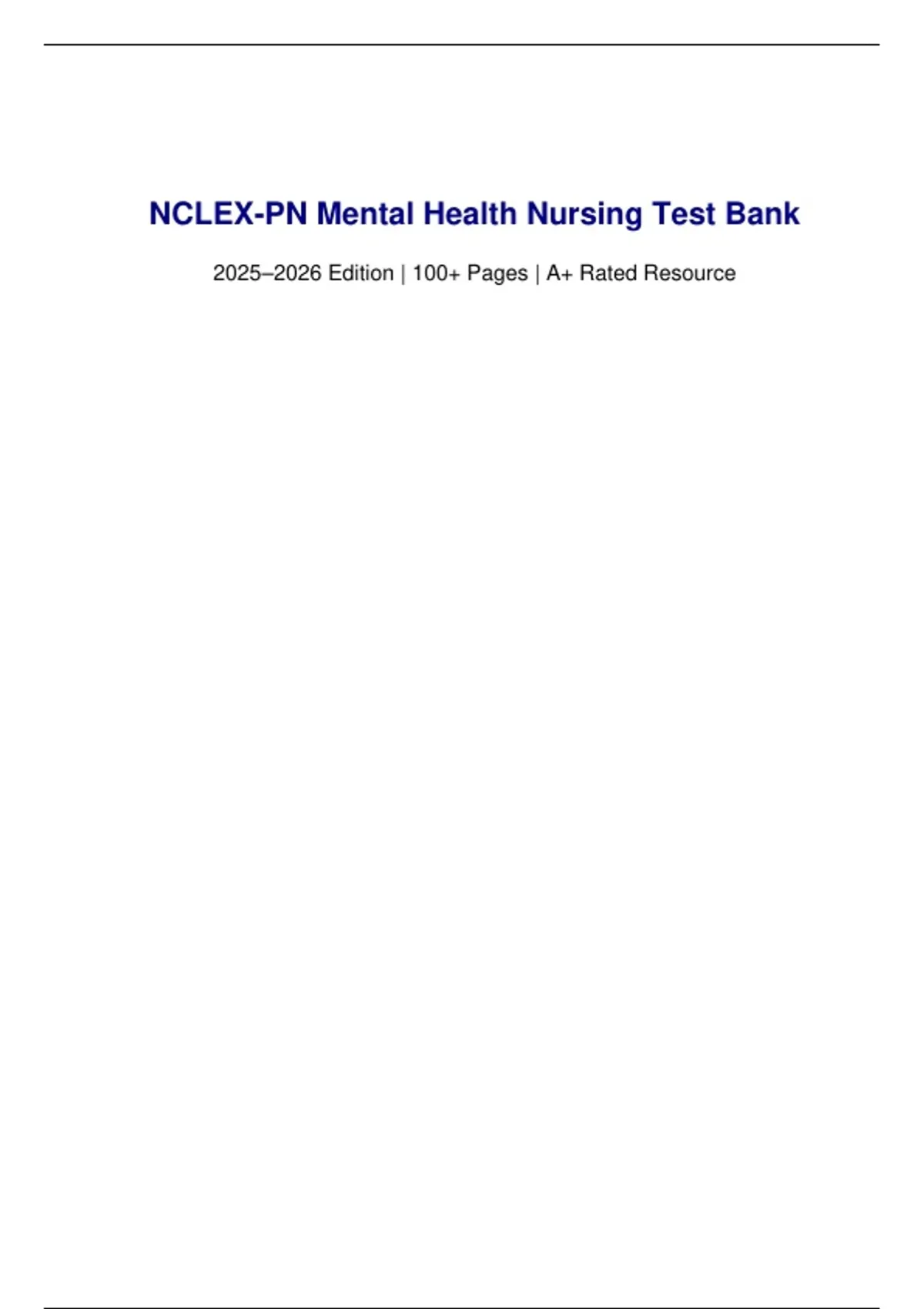 ,NCLEX-PN Mental Health Nursing Test Bank 2025–2026