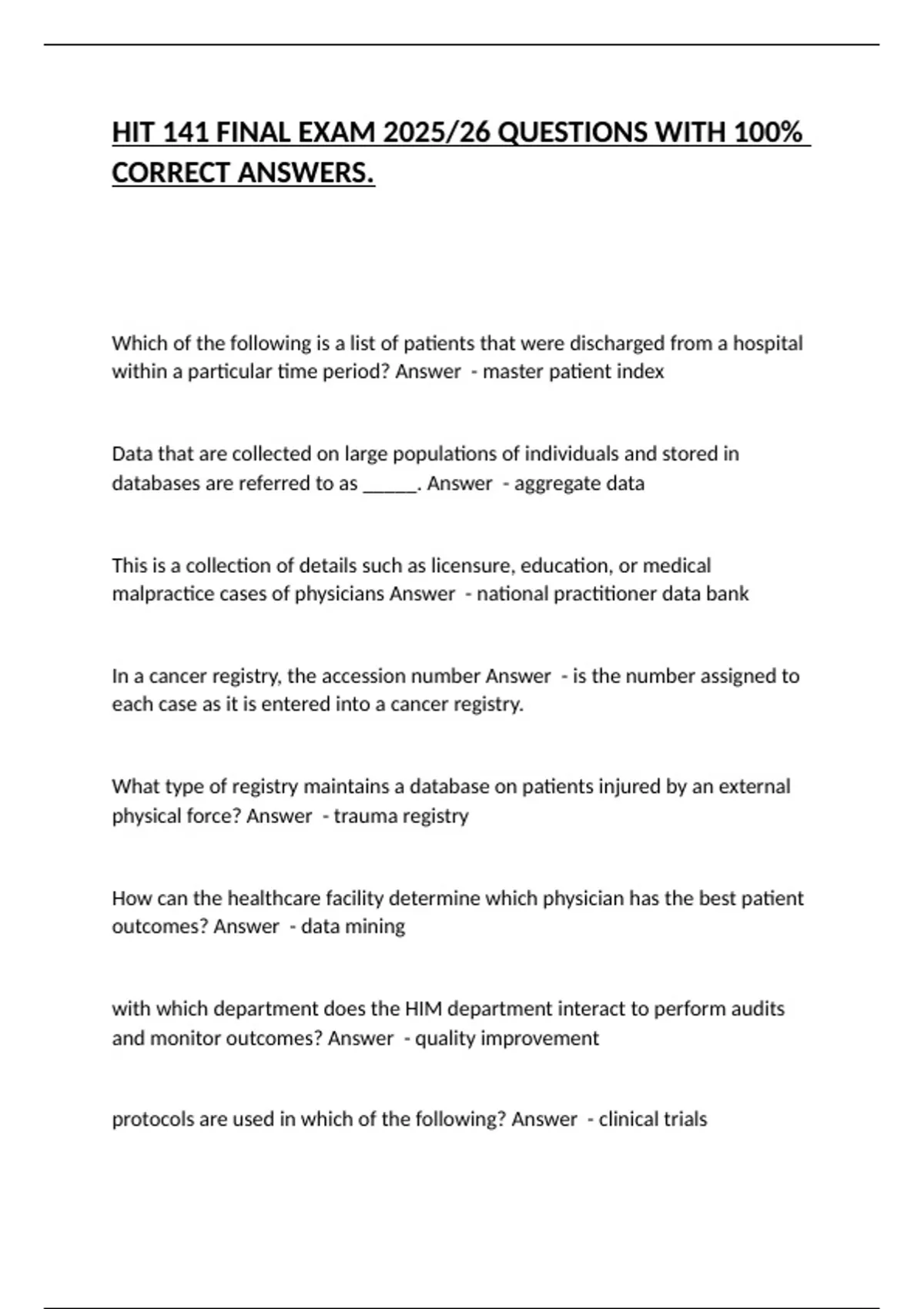 reacord? Answer - patient registries