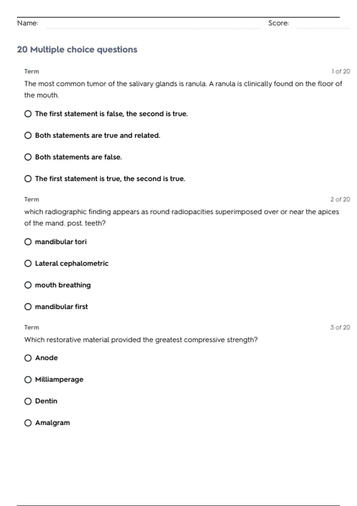20 Multiple choice questions