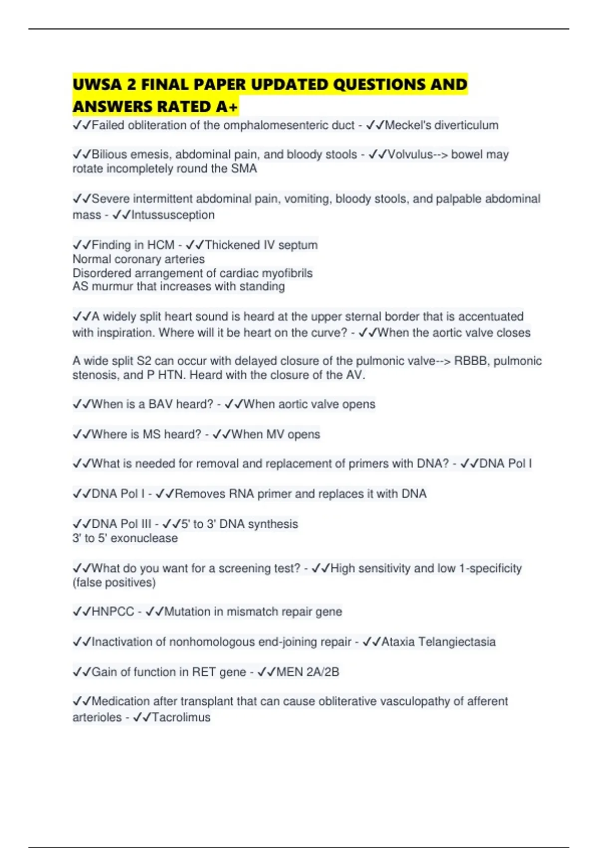 UWSA 2 FINAL PAPER UPDATED QUESTIONS AND ANSWERS RATED A+