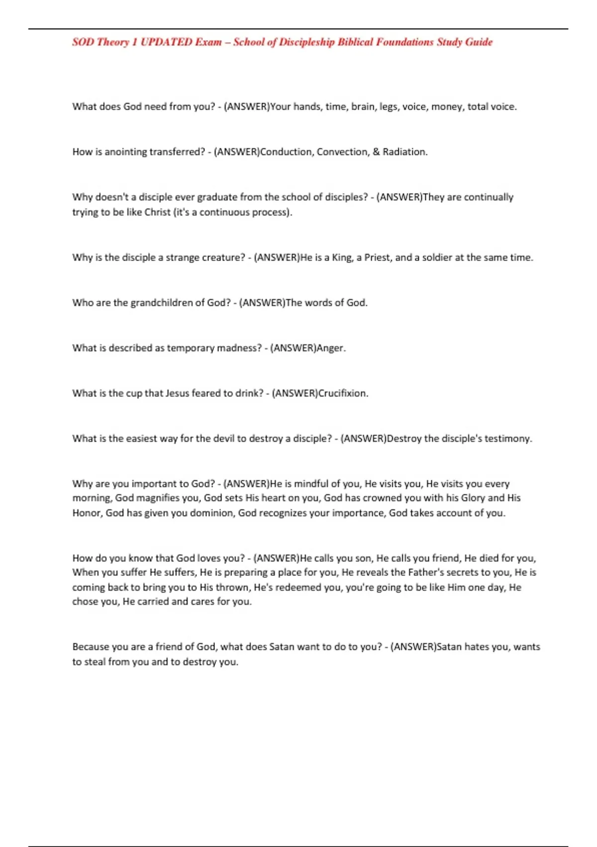 , SOD Theory 1 UPDATED Exam – School of Discipleship Biblical Foundations Study Guide