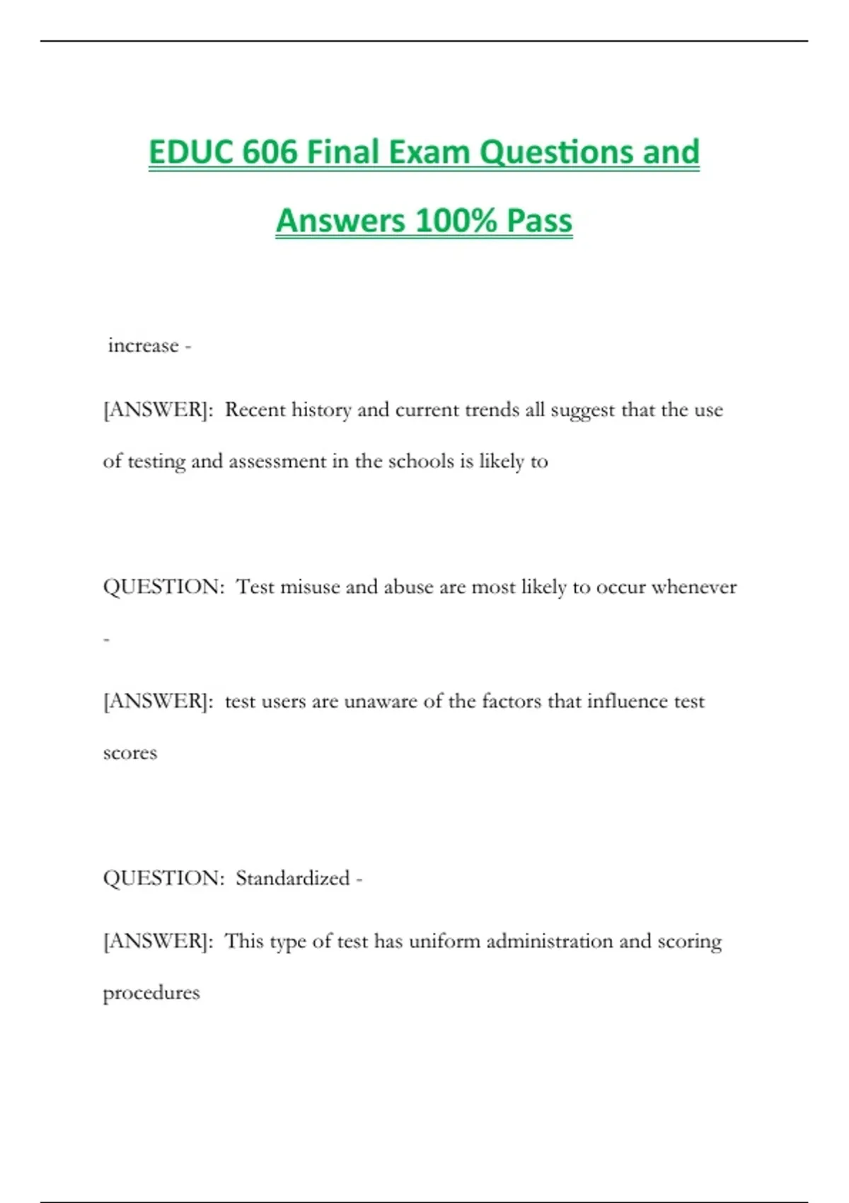 EDUC 606 Final Exam Questions and Answers 100% Pass