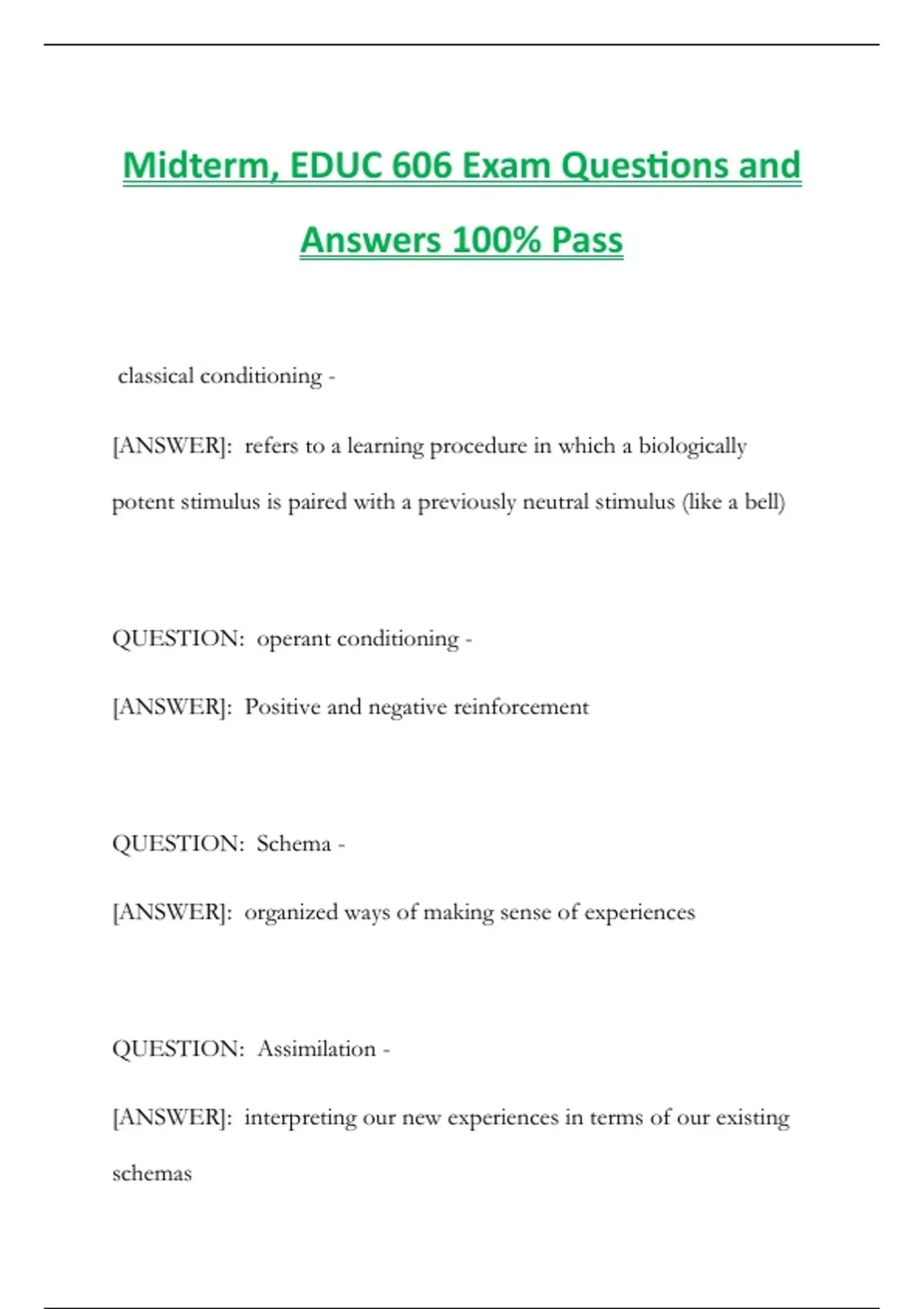 Midterm, EDUC 606 Exam Questions and Answers 100% Pass