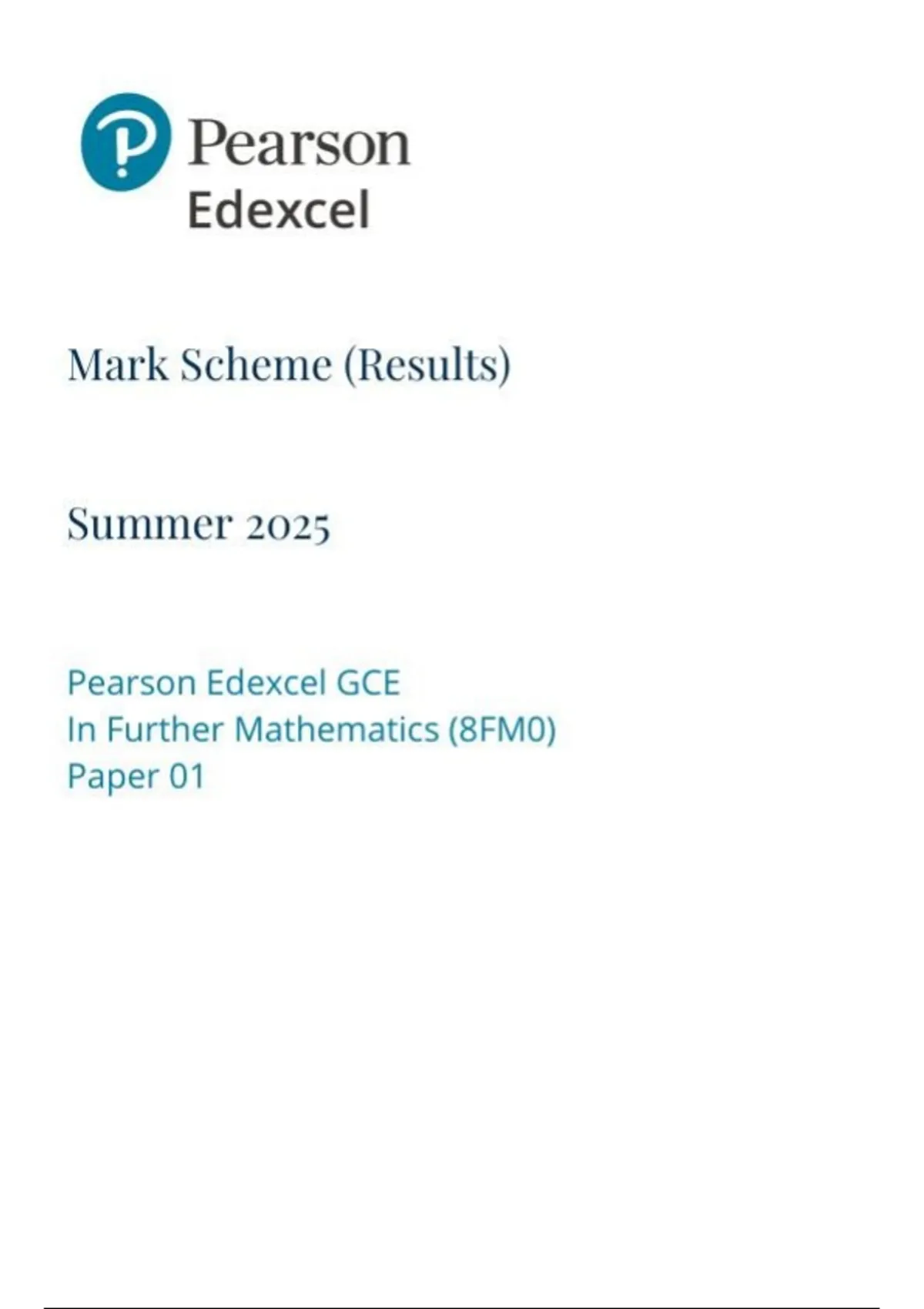 Pearson Edexcel as level Further Mathematics |final mark scheme | 2025| 8FM0/01
