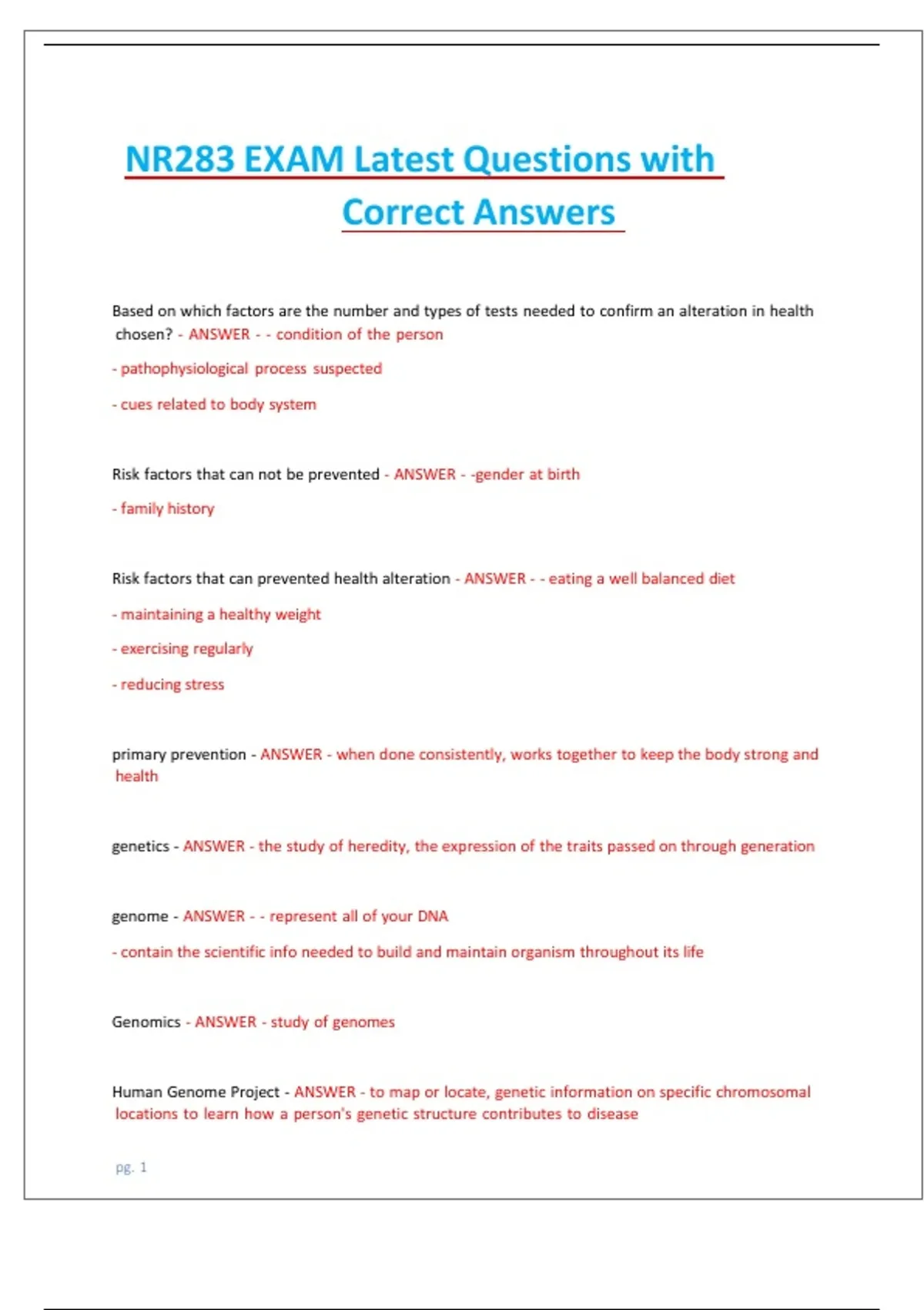 NR283 EXAM Latest Questions with Correct Answers