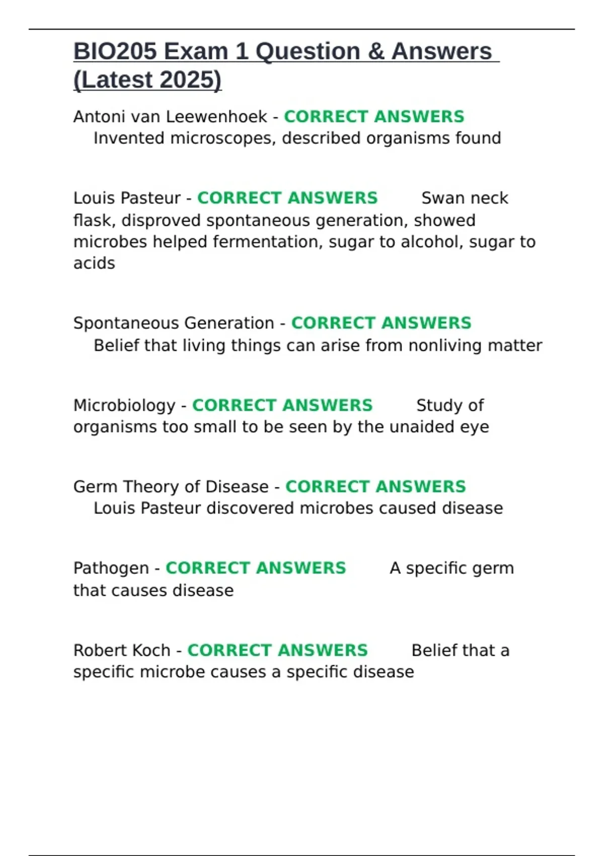 BIO205 Exam 1 Question & Answers (Latest 2025).docx