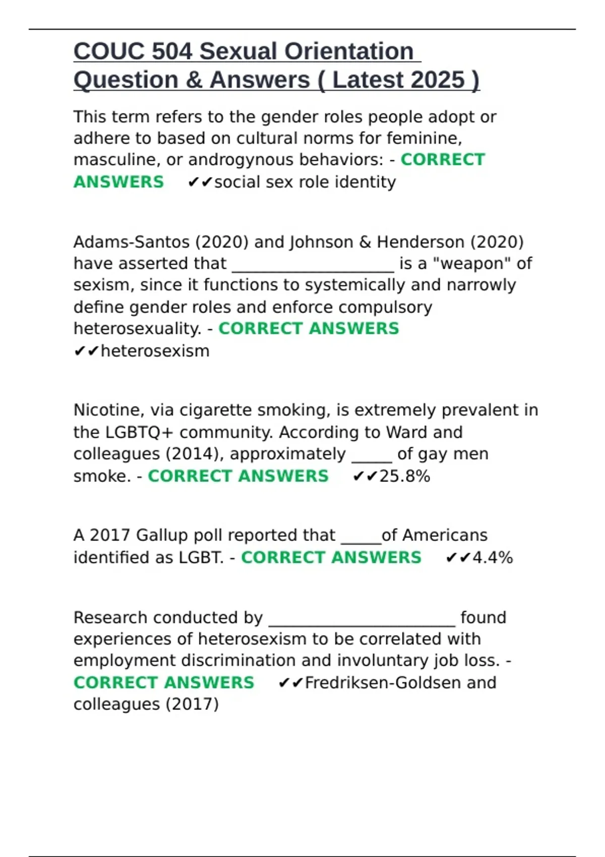 COUC 504 Sexual Orientation Question & Answers ( Latest 2025 ).docx