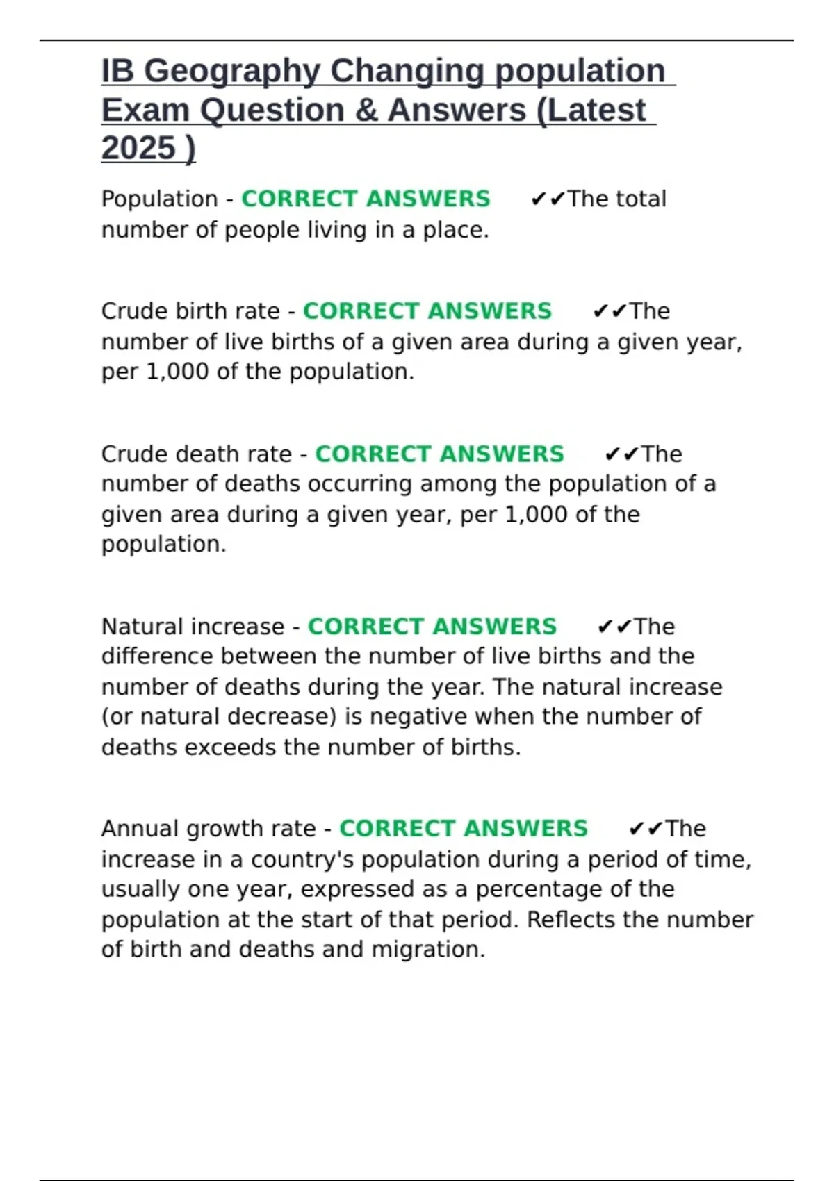 IB Geography Changing population Exam Question & Answers (Latest 2025 ).docx