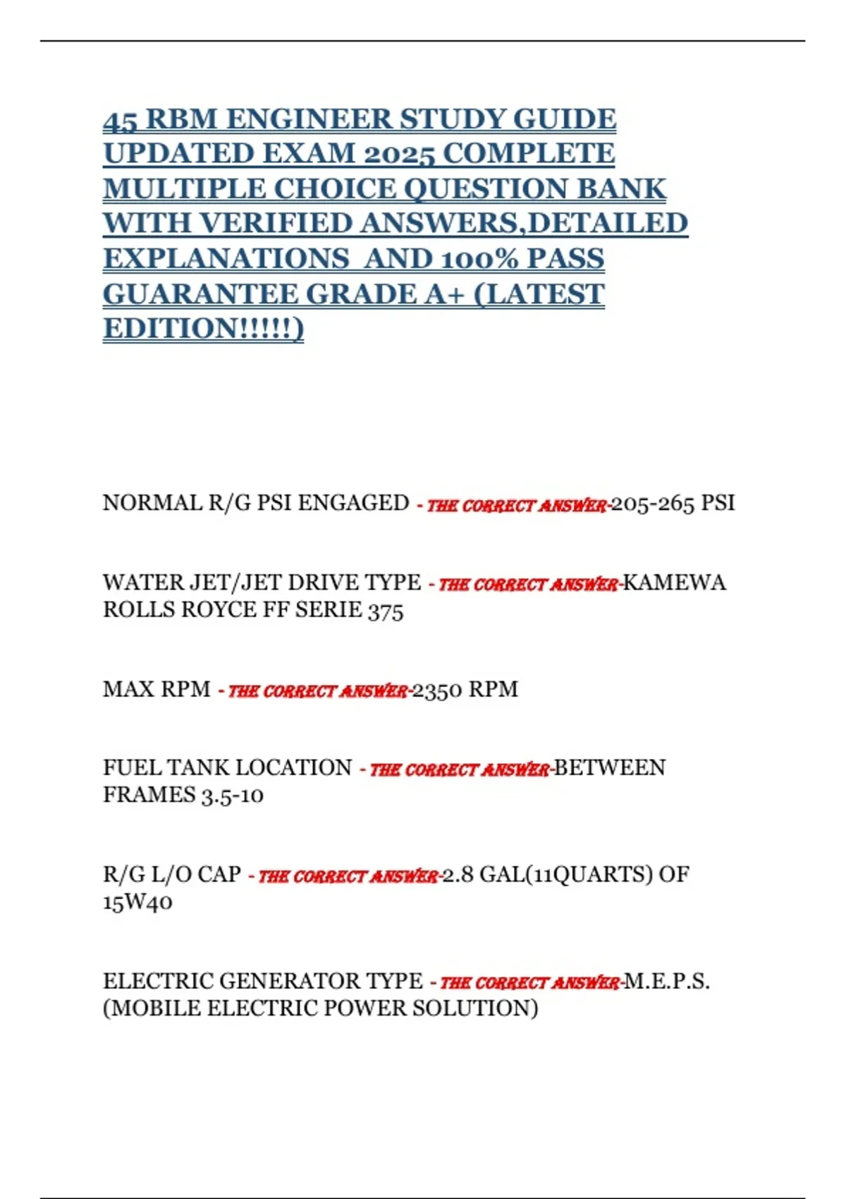 ELECTRIC GENERATOR TYPE - THE CORRECT ANSWER-M.E.P.S.