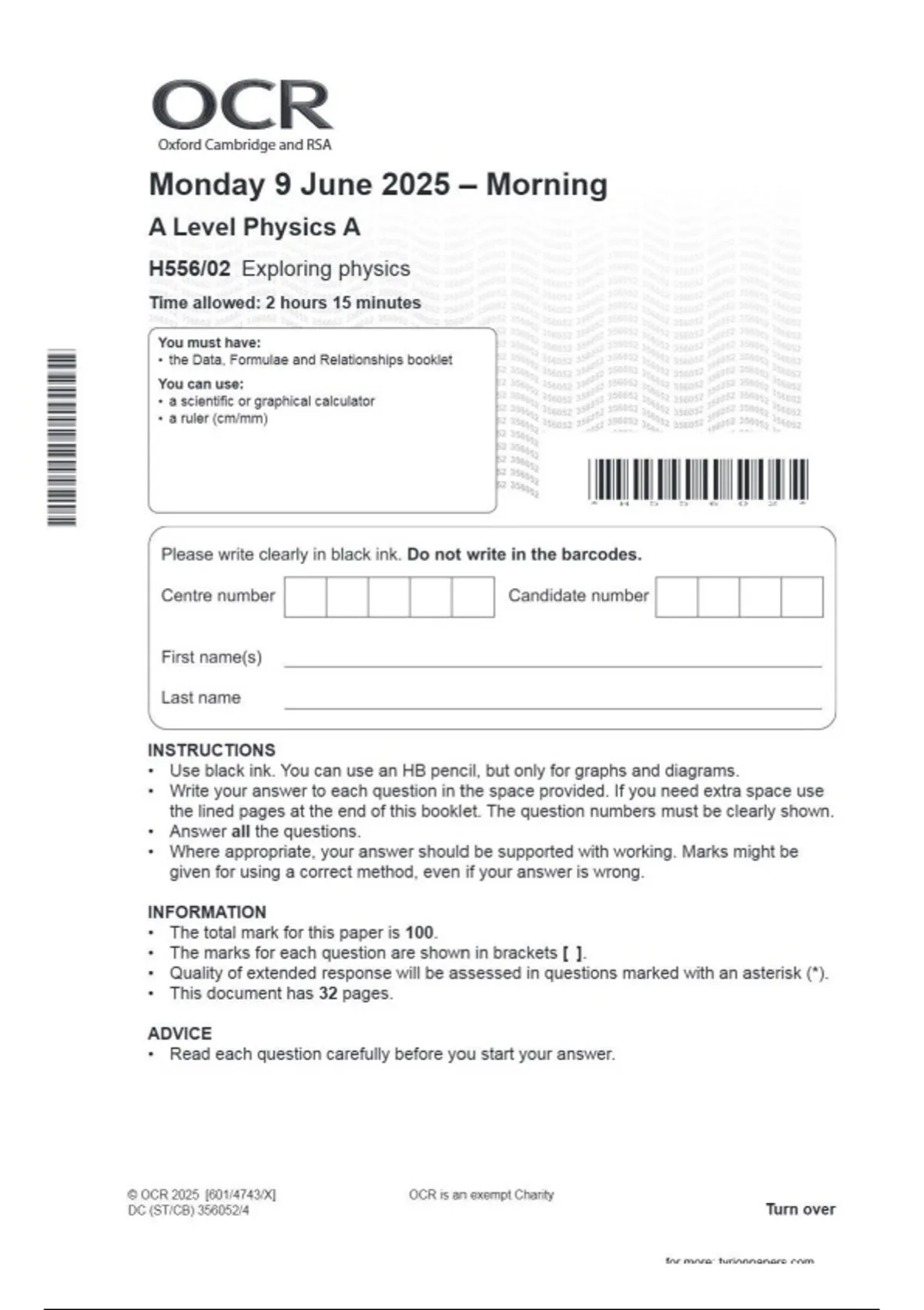 OCR A Level Physics A H556/02 Exploring physics June 2025