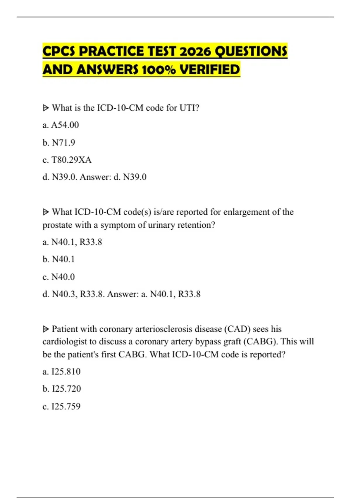 CPCS PRACTICE TEST 2026 QUESTIONS AND ANSWERS 100% VERIFIED