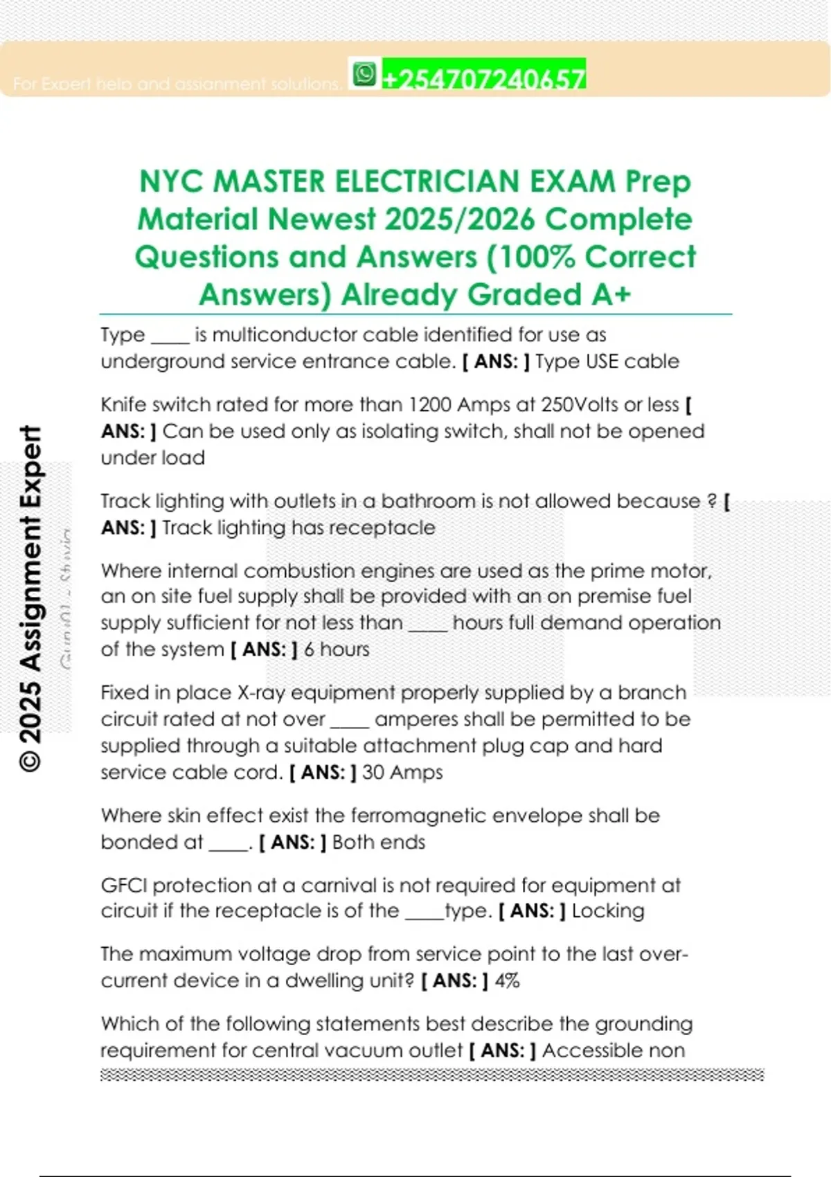 NYC MASTER ELECTRICIAN EXAM Prep Material Newest 2025/2026 Complete Questions and Answers (100% Correct Answers) Already Graded A+