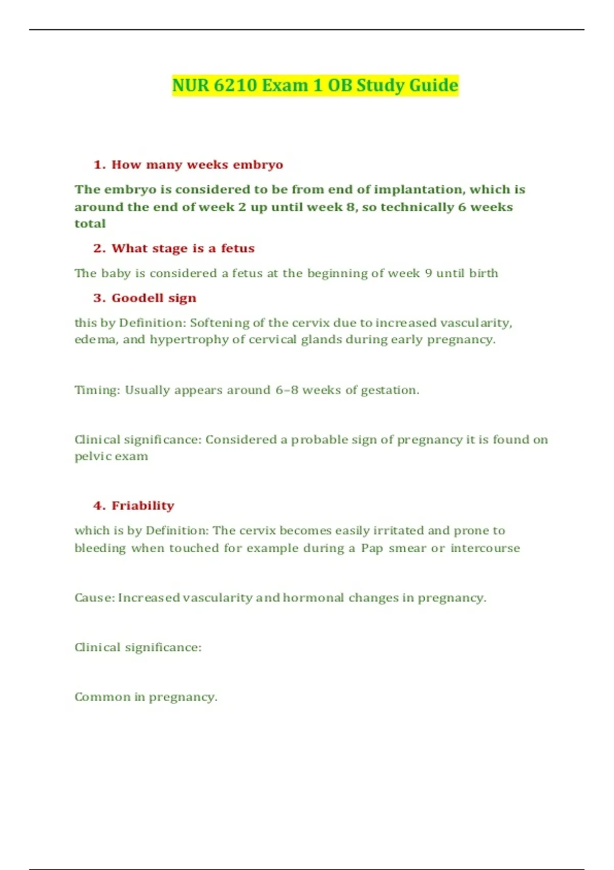 NUR 6210 Exam 1 OB Study Guide | William Patterson University
