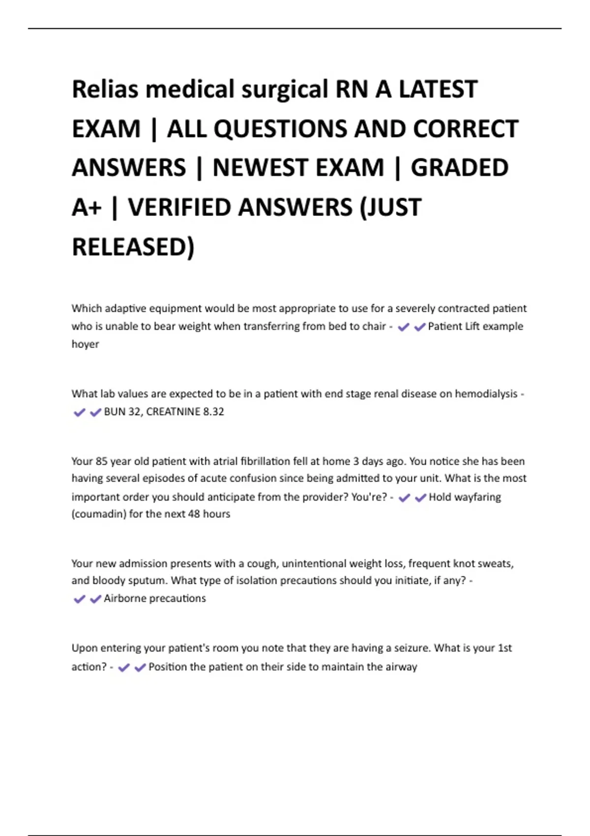 Relias medical surgical RN A LATEST