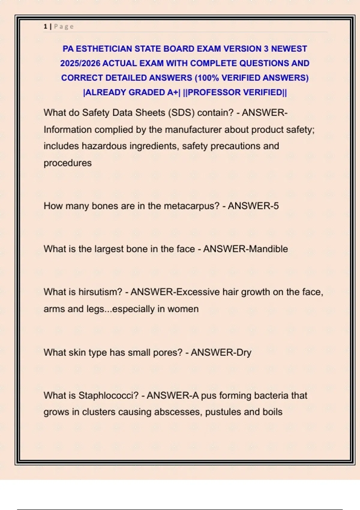 PA ESTHETICIAN STATE BOARD EXAM VERSION 3 NEWEST 2025/2026 ACTUAL EXAM WITH COMPLETE QUESTIONS AND CORRECT DETAILED ANSWERS (100% VERIFIED ANSWERS) |ALREADY GRADED A+| ||PROFESSOR VERIFIED||