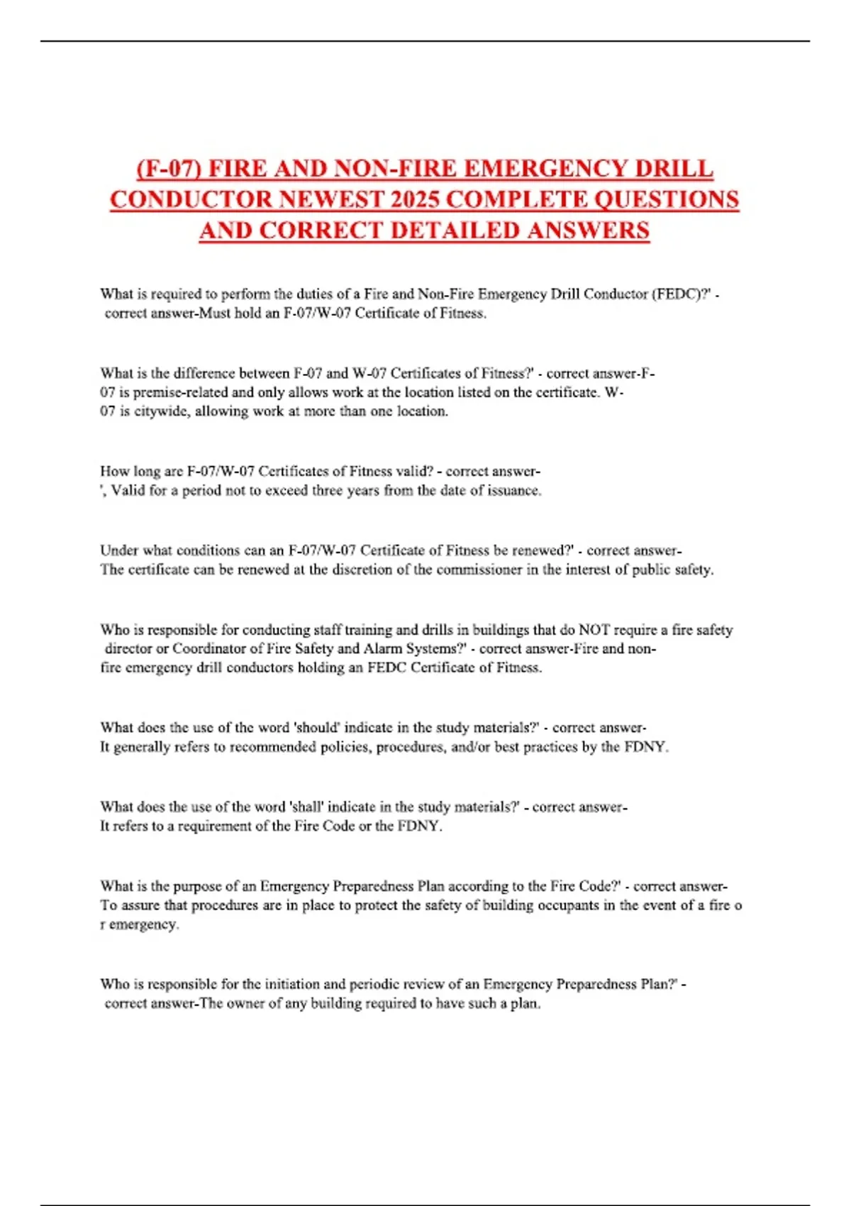 (F-07) FIRE AND NON-FIRE EMERGENCY DRIL...TIONS AND CORRECT DETAILED ANSWERS.