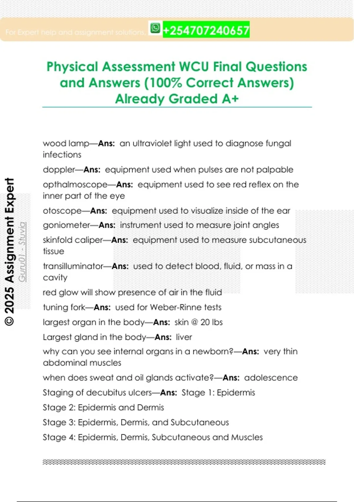 Physical Assessment WCU Final Questions and Answers (100% Correct Answers) Already Graded A+