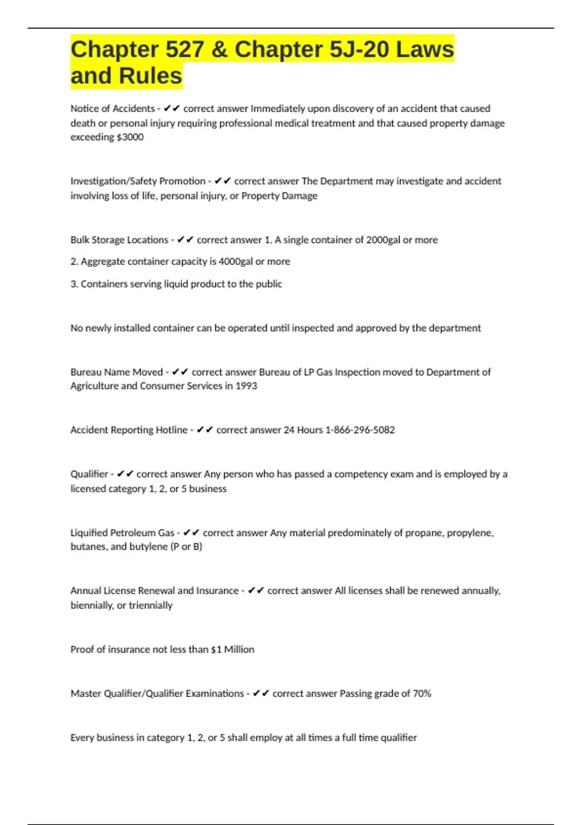 Chapter 527 & Chapter 5J-20 Laws and Rules exam questions and 100% correct answers