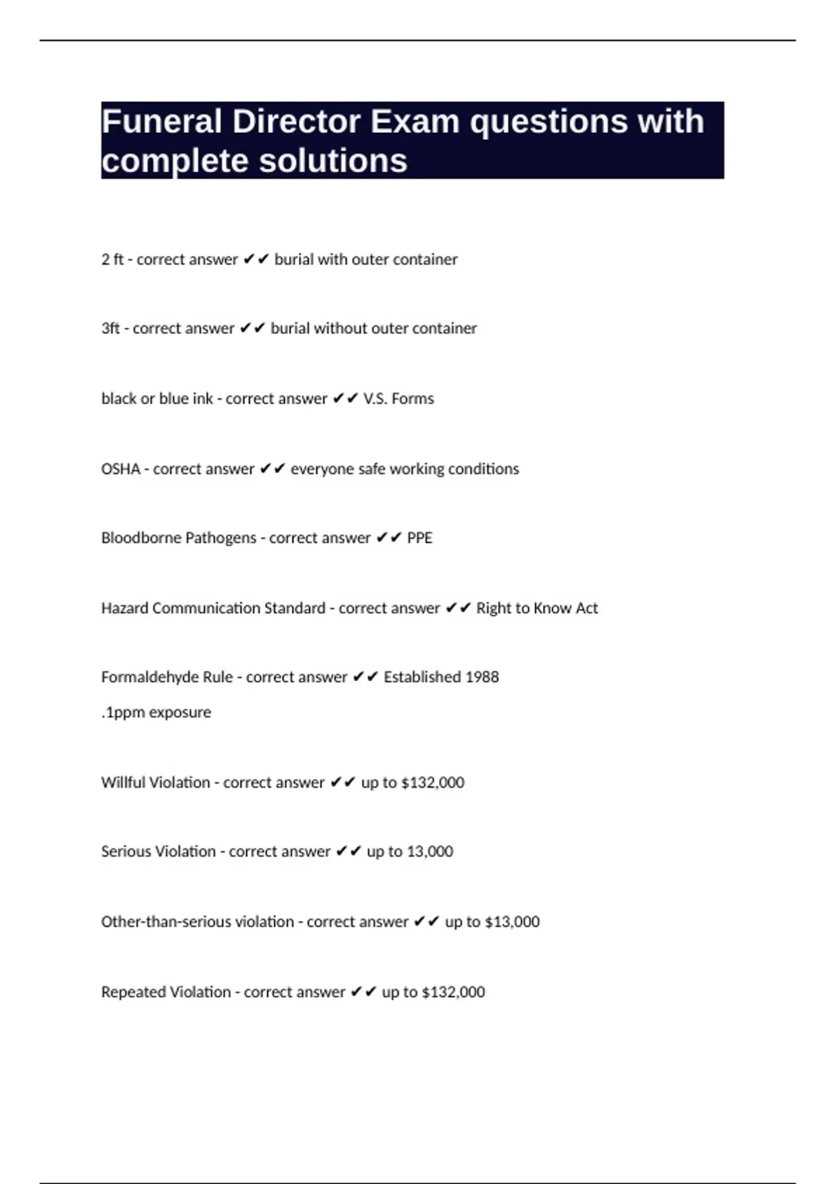 Funeral Director Exam questions with