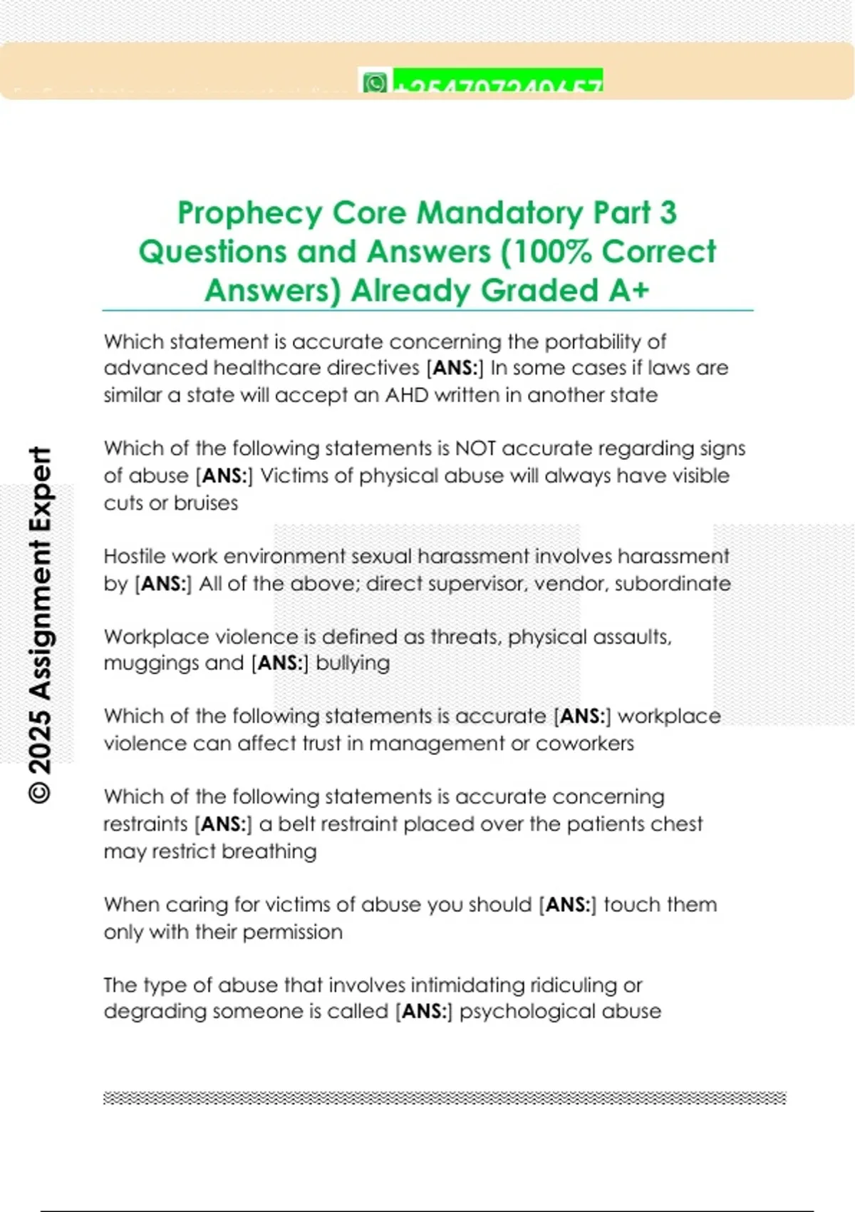 Prophecy Core Mandatory Part 3 Questions and Answers (100% Correct Answers) Already Graded A+