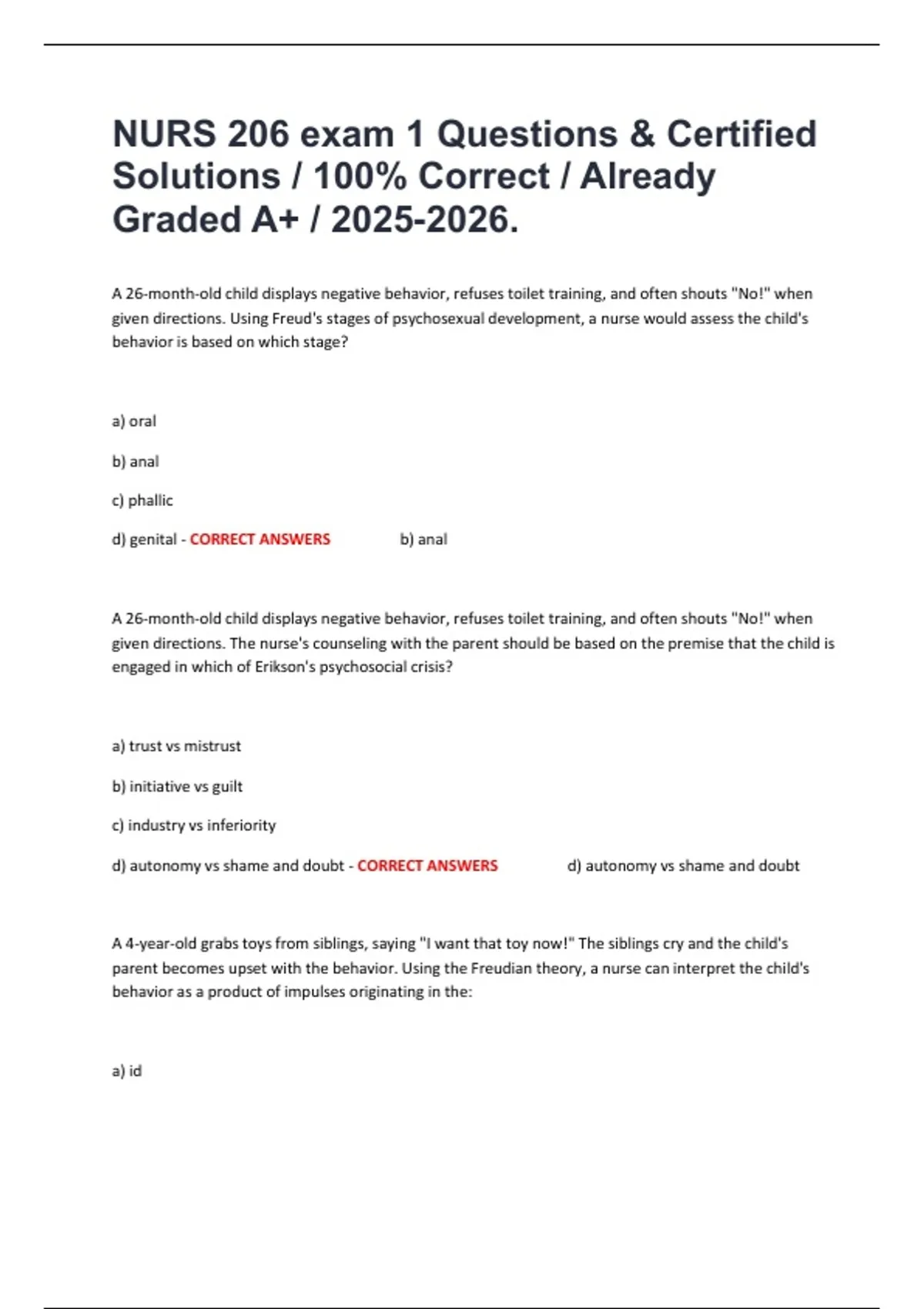d) autonomy vs shame and doubt - CORRECT ANSWERS d) autonomy vs shame and doubt