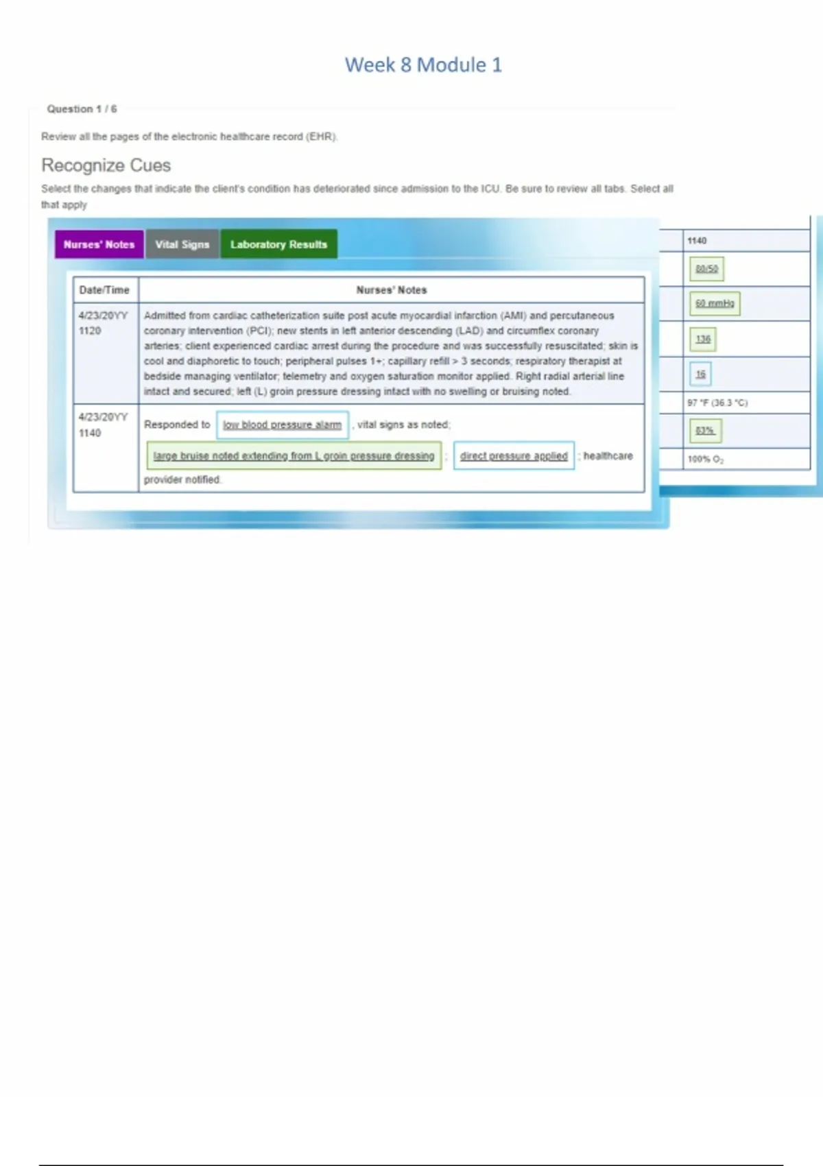 Select the changes that indicate the client’'s condition has deteriorated since admission to the ICU. Be sure to review all tabs. Select all
