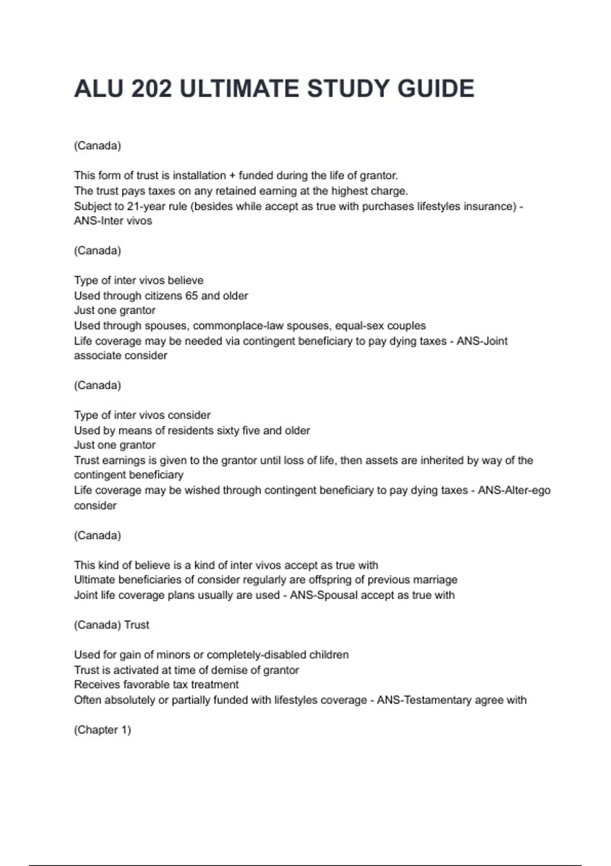 Often absolutely or partially funded with lifestyles coverage - ANS-Testamentary agree with