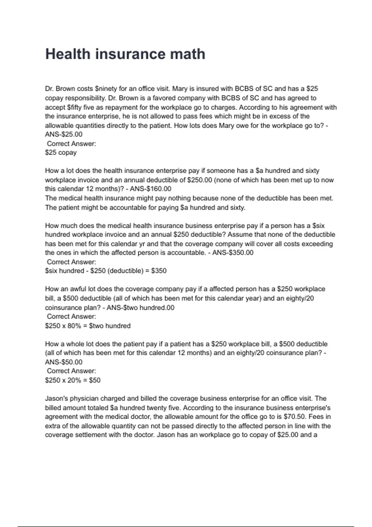 How an awful lot does the coverage company pay if a affected person has a $250 workplace