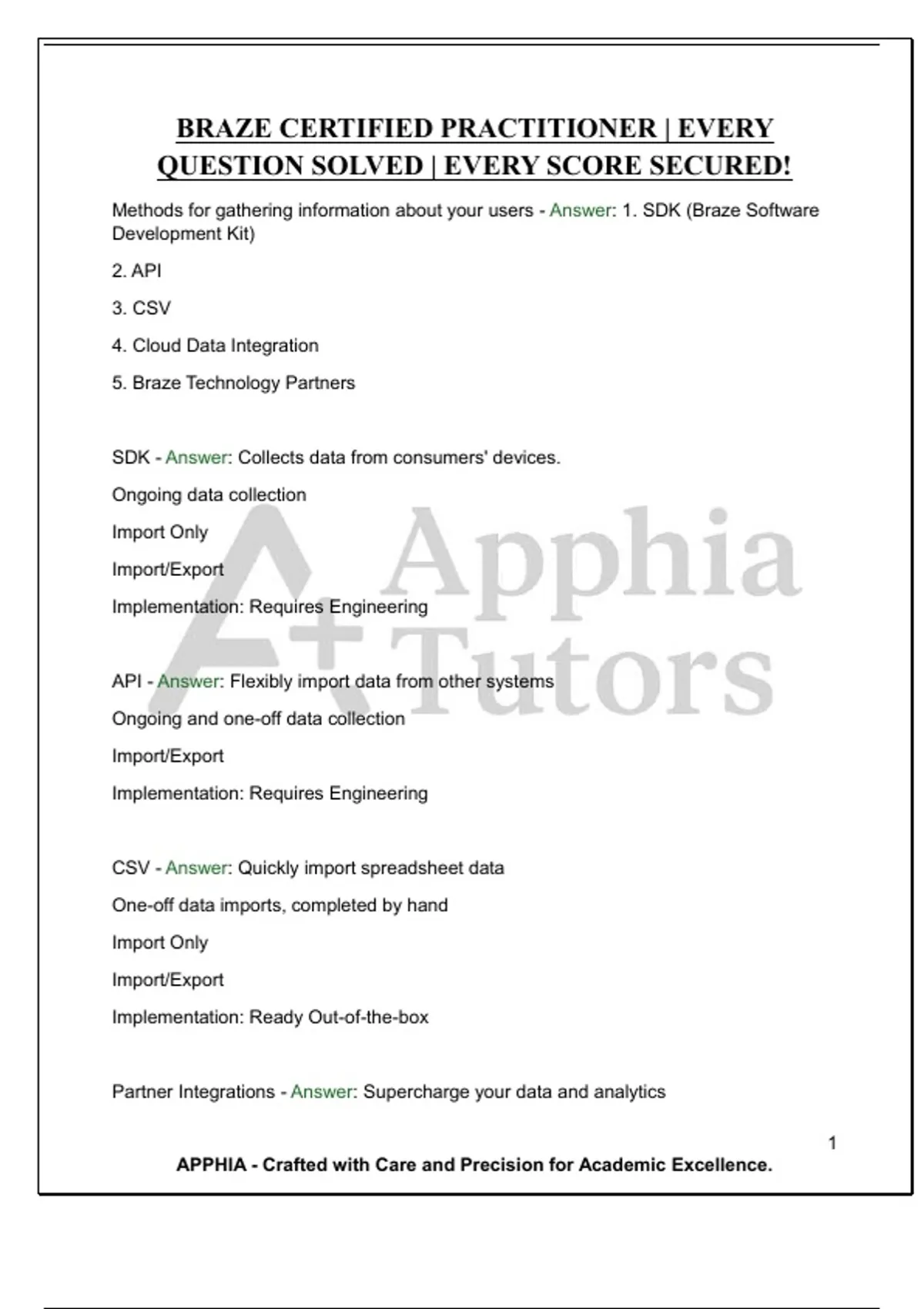 Methods for gathering information about your users - Answer: 1. SDK (Braze Software